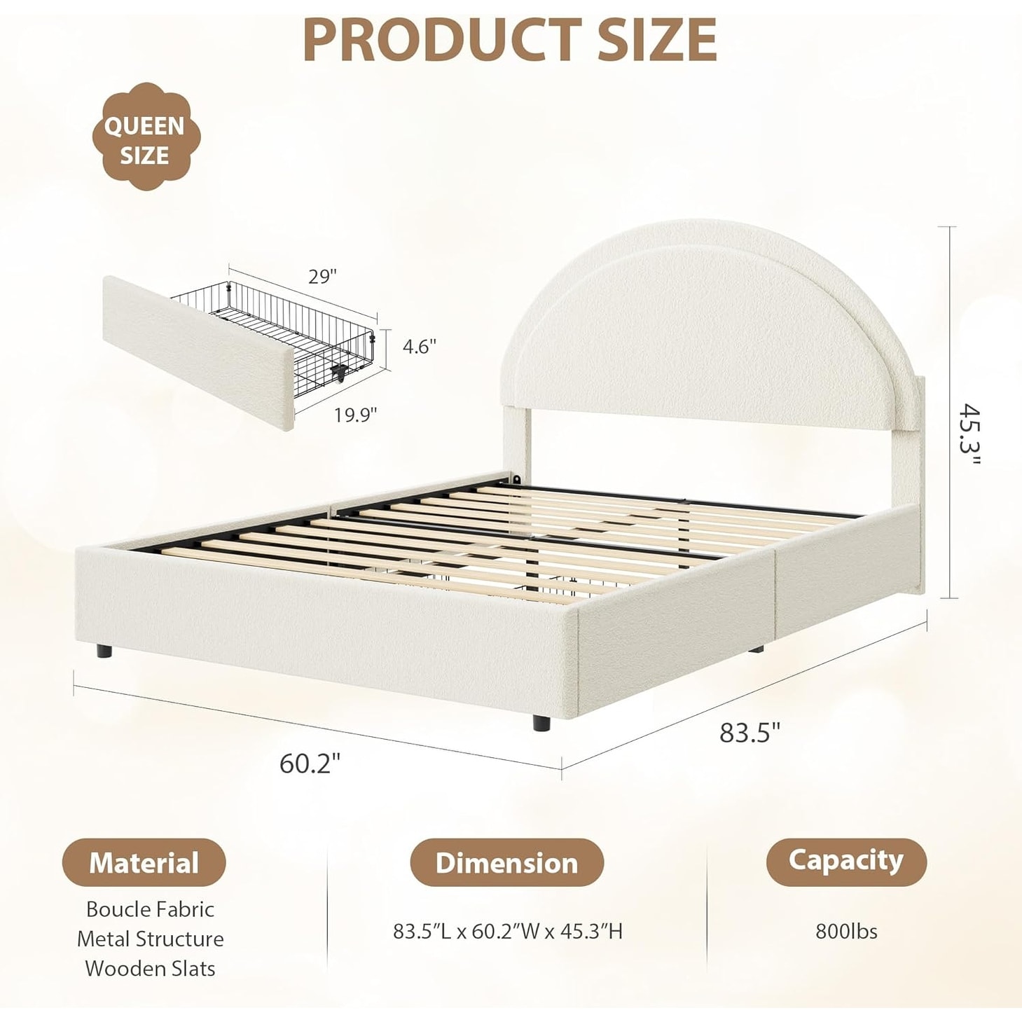 Garvee Queen Boucle Bed Storage Drawers Round Headboard