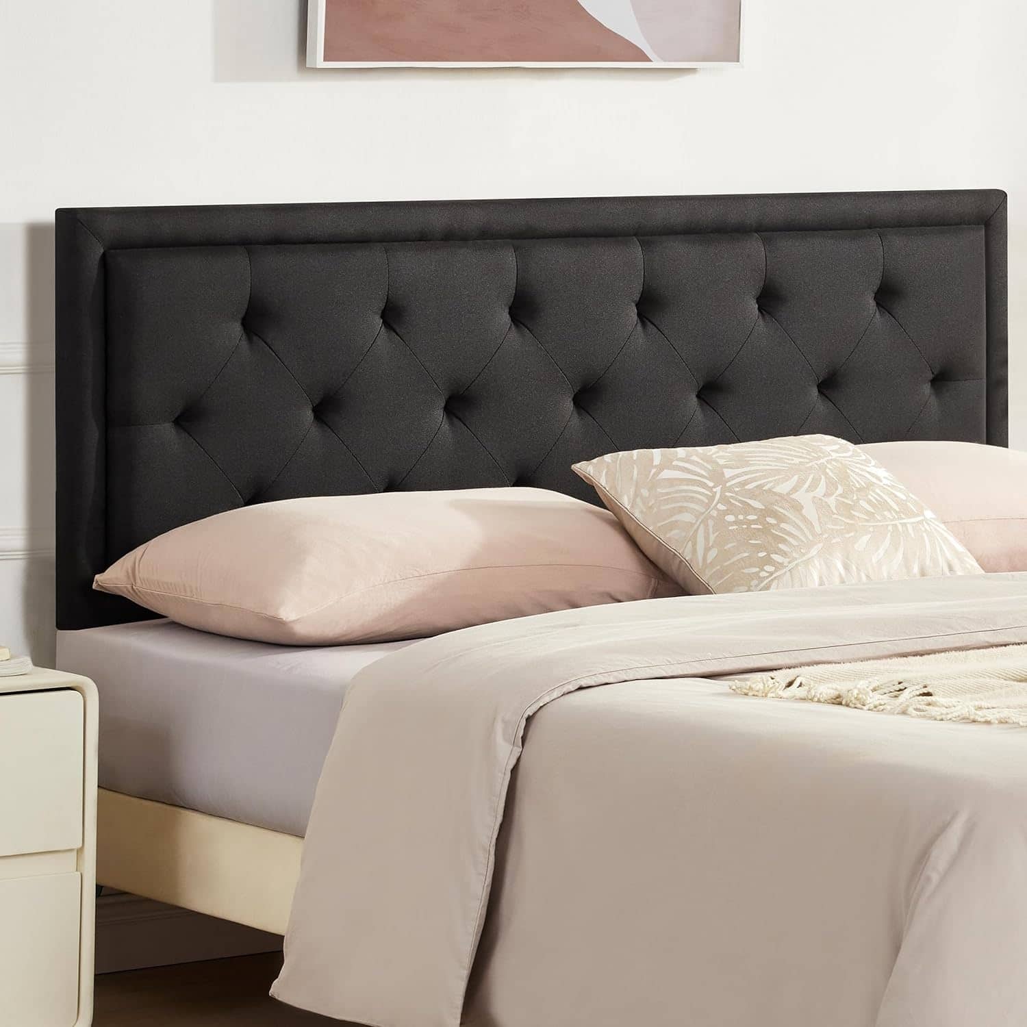 Upholstered Queen/Full Size Tufted Headboard with Solid Wood Legs, Wall or Bed Frame Mount, Black Velvet Fabric