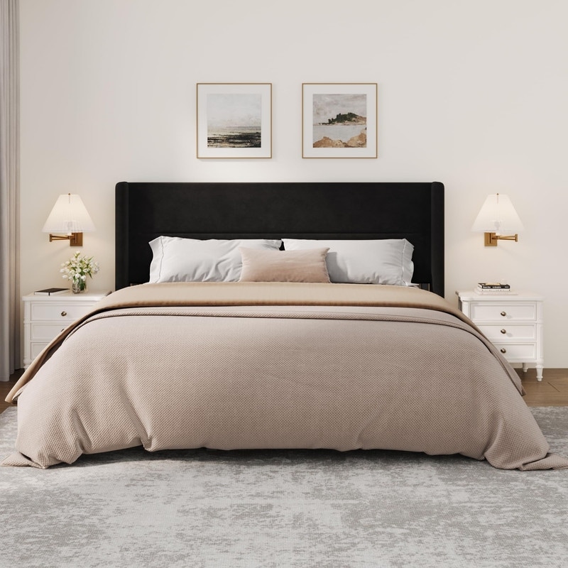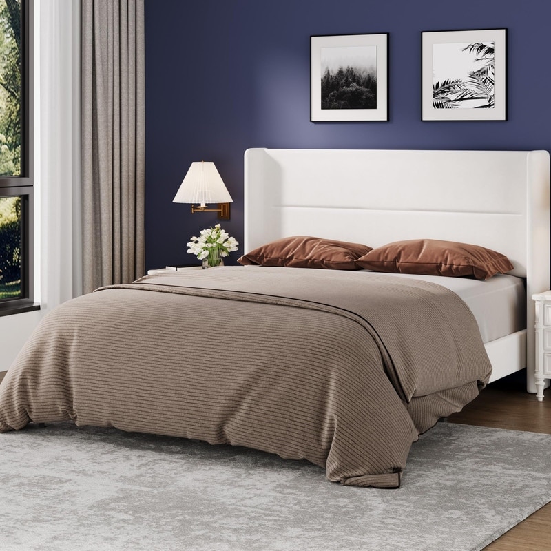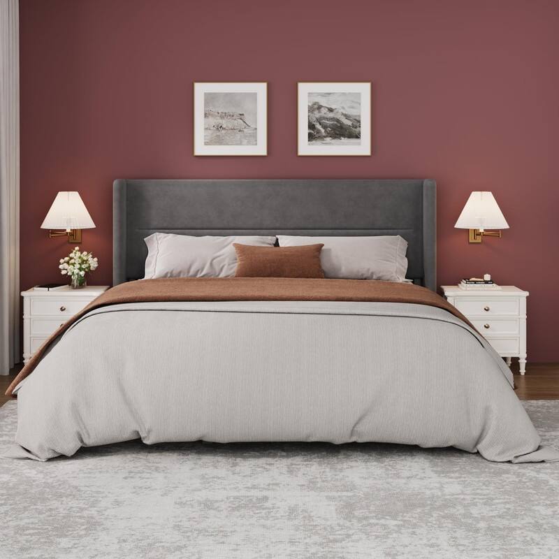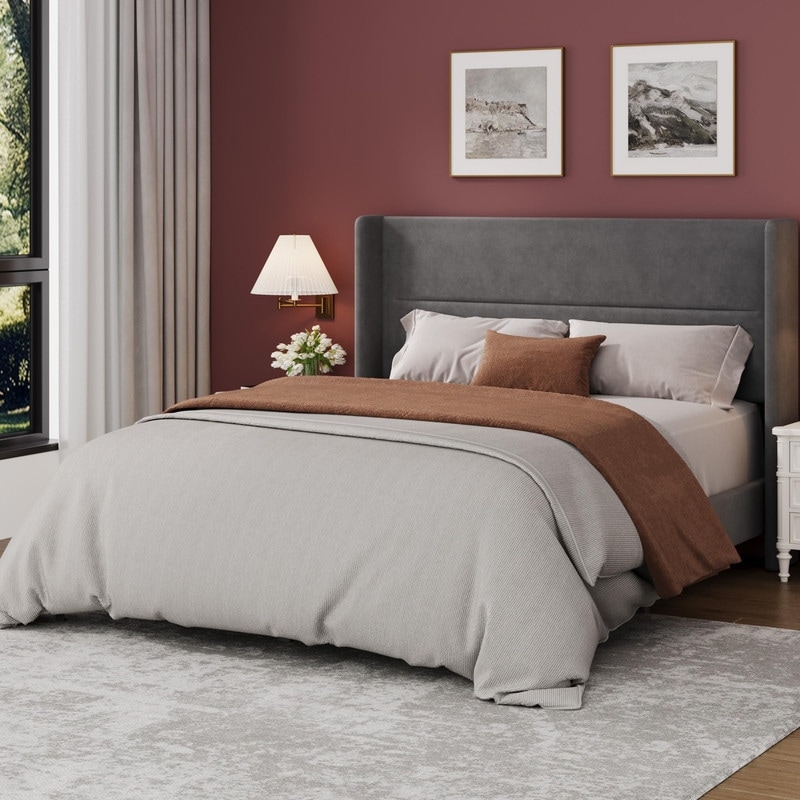 Garvee Bed Frame with Wingback Headboard, Upholstered Platform Bed Frame with Wood Slats, No Box Spring Needed