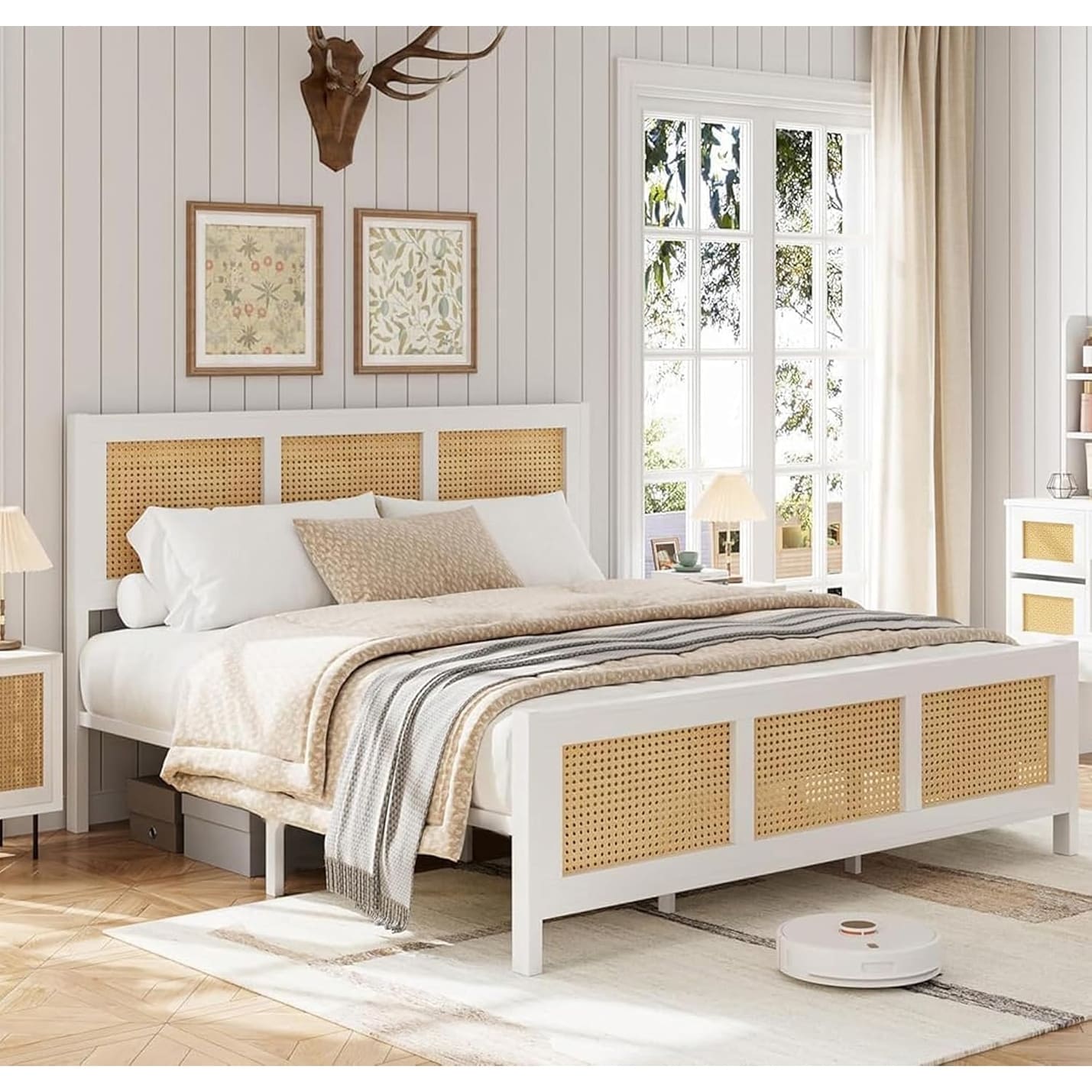 Solid Wood Platform Bed with Trundle - Full Size Bed Frame & Footboard - Modern Bedroom Furniture