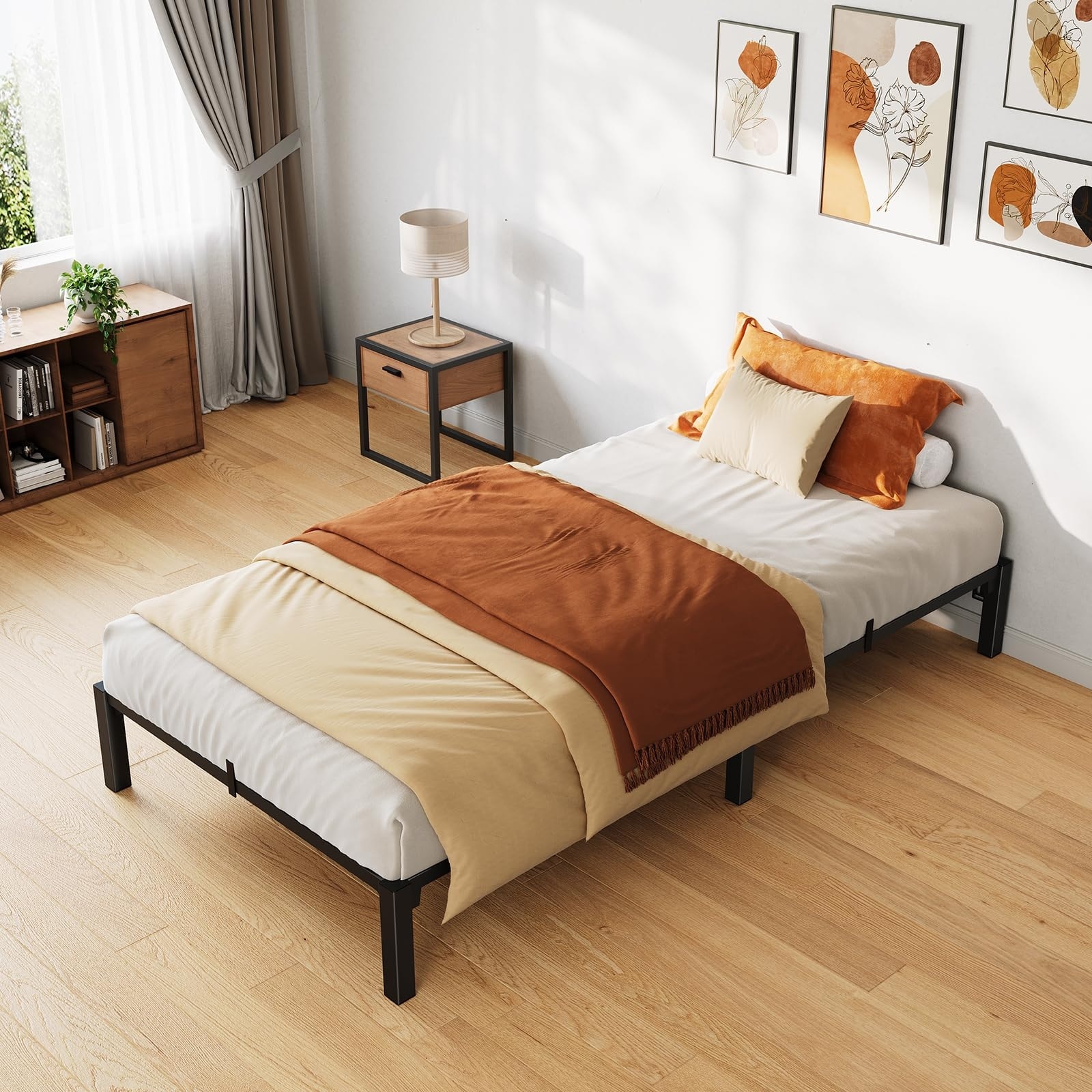 Metal Platform Bed Frame, 10" High Heavy-Duty Metal Frame with Steel Slats, 800 lbs Capacity & Under-Bed Storage