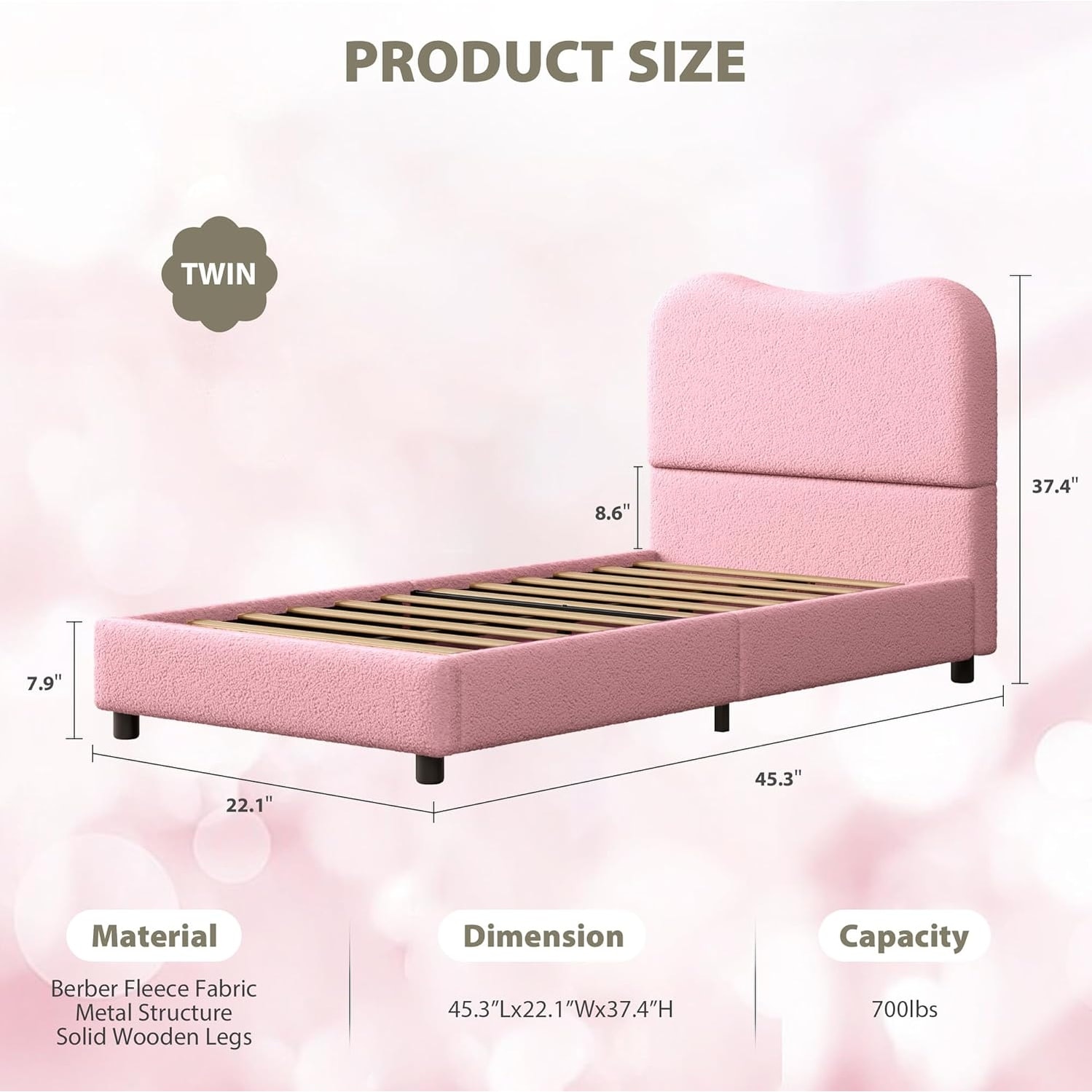 Twin Kids Boucle Bed Frame Pink No Box Spring