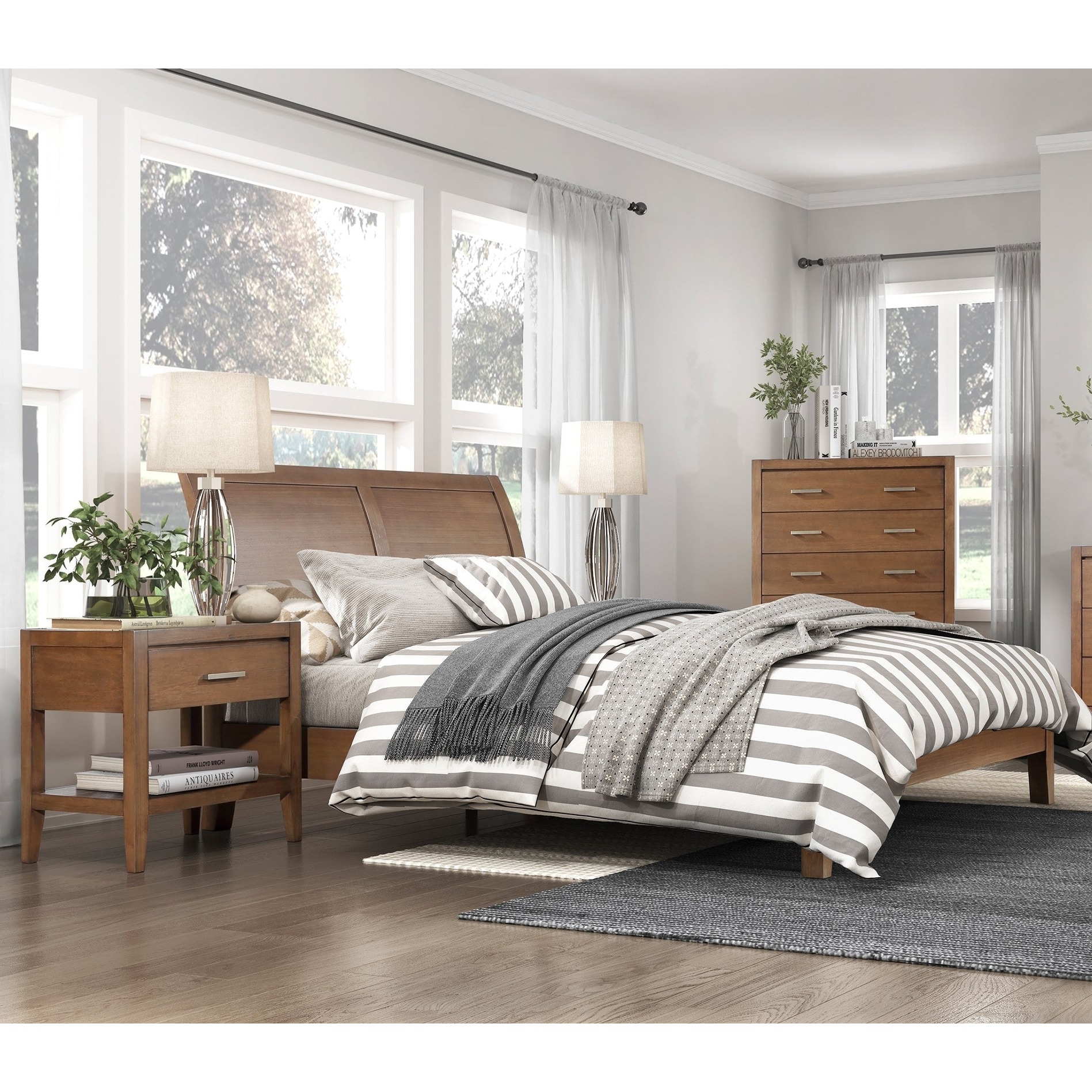 3pc Bedroom Set Light Brown Finish Bed Chest Nightstand