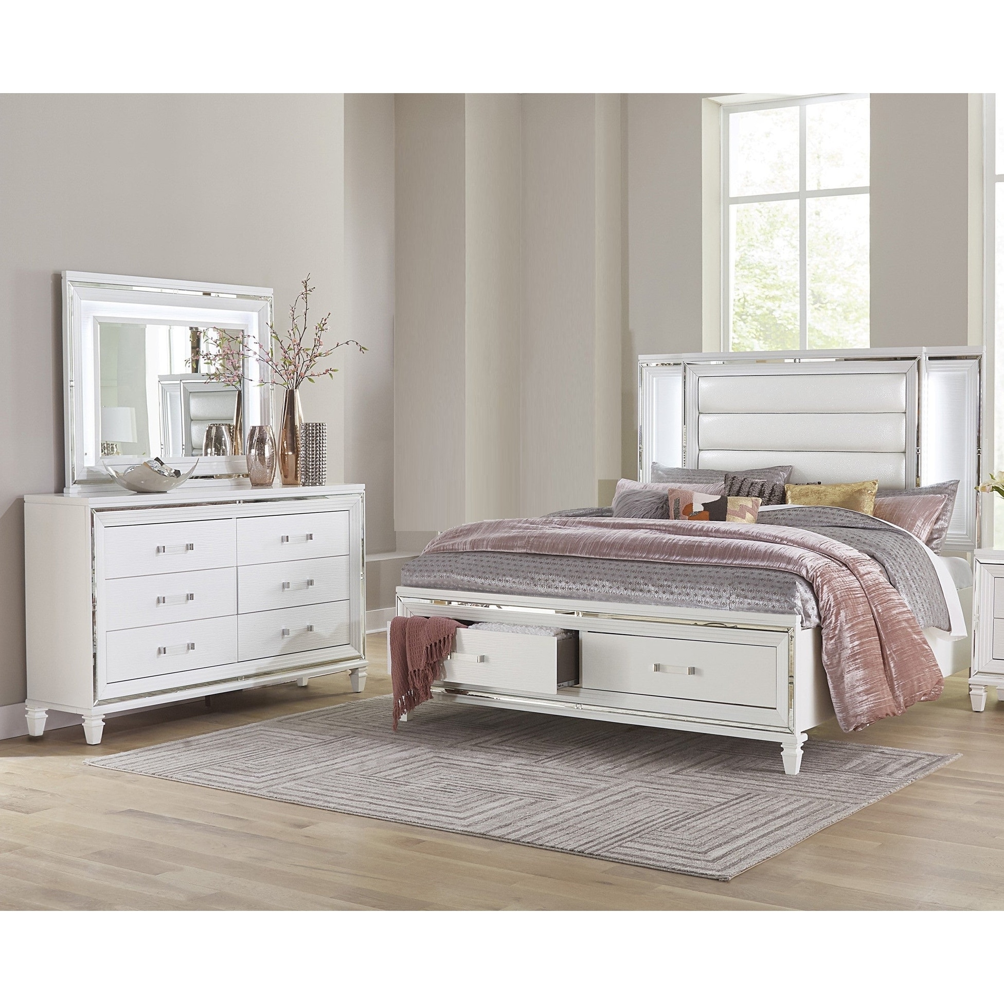 Glam LED Light 3pc Bedroom Set White Finish Bed Dresser Mirror