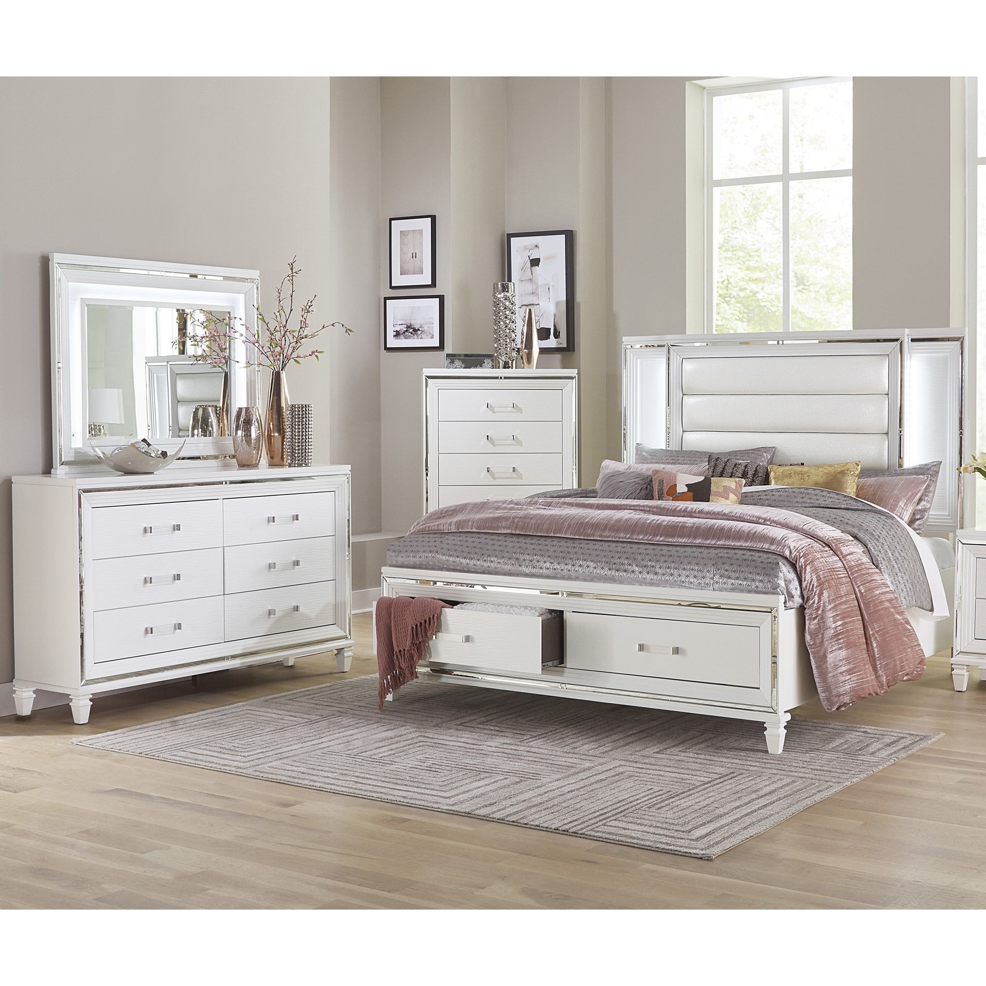 Glam LED Light 3pc Bedroom Set White Finish Bed Dresser Mirror