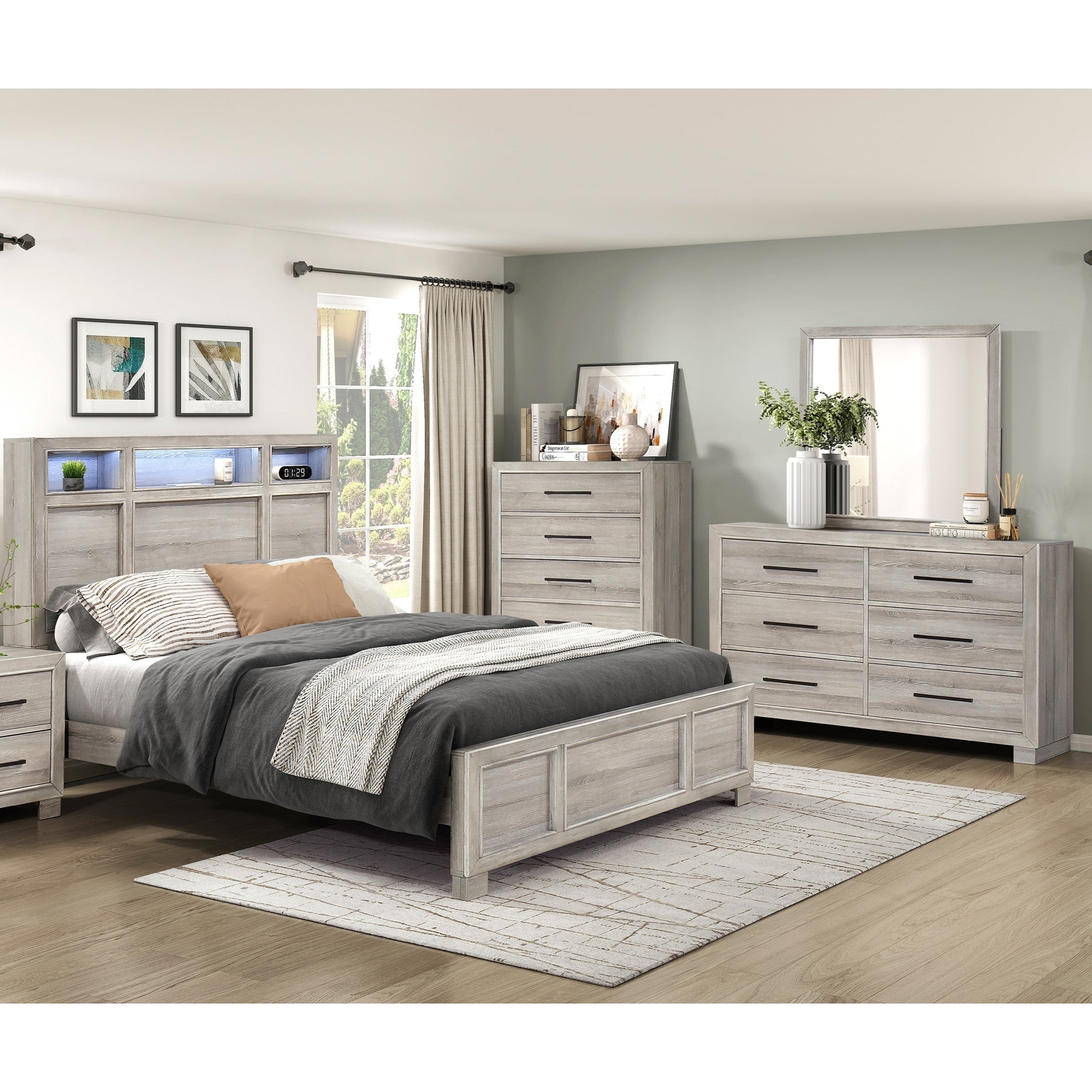 Contemporary Design Modern Bedroom Set 4pc Bed Dresser Mirror Chest Furniture