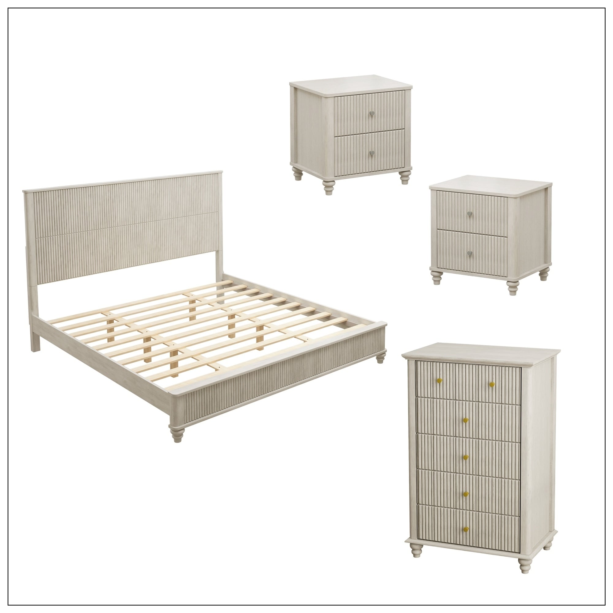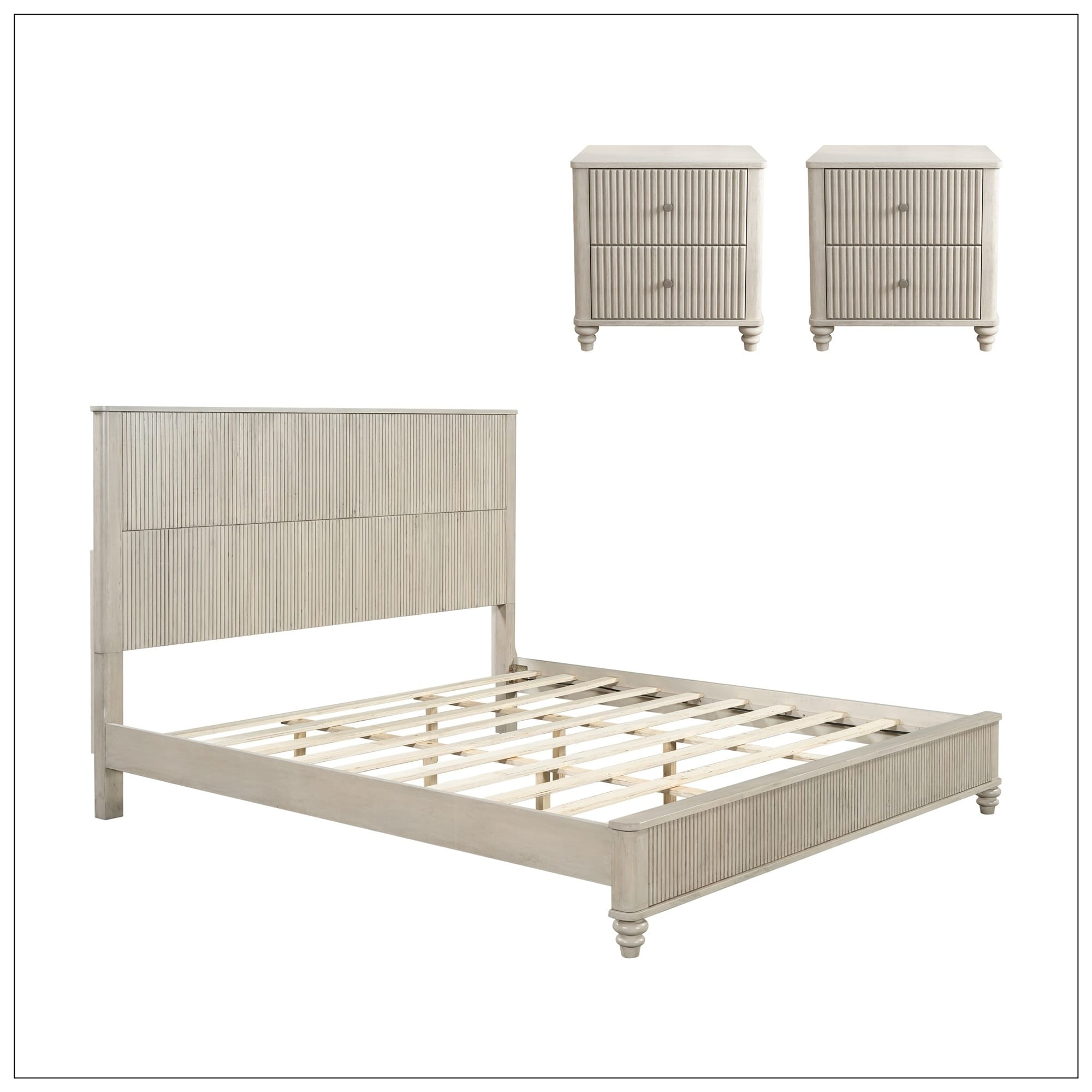 Taomika,(Set of 3)3-Pieces White Bedroom Set Platform Bed Frame and Modern Nightstand-2