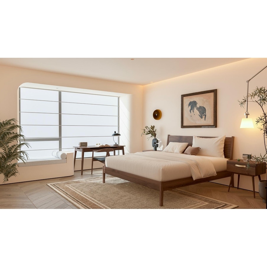 Isabella Mid Century Bedroom Set - Solid Black American Walnut (Bed + 1 Nightstand + Dresser + Chest)