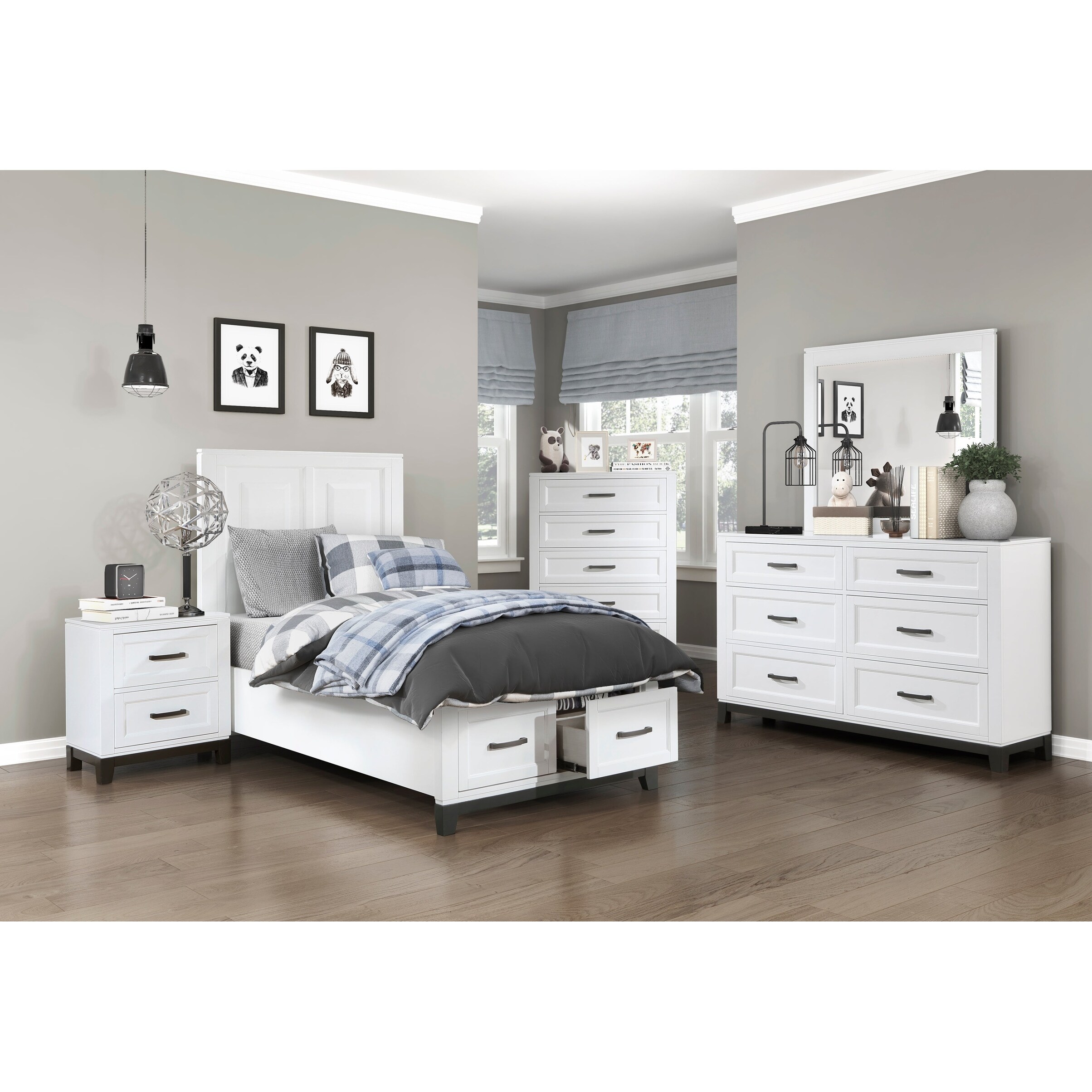 White Finish 4pc Bedroom Set Bed Nightstand Dresser Mirror