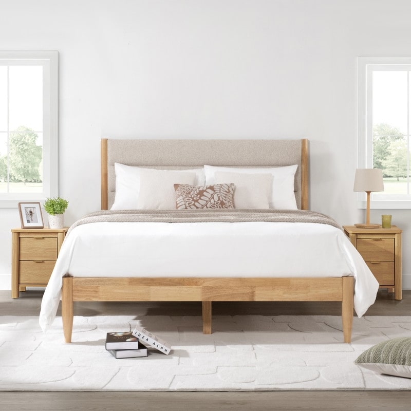 3-Piece Bedroom Set Upholstered Bed Frame with 2 Wood Nightstands