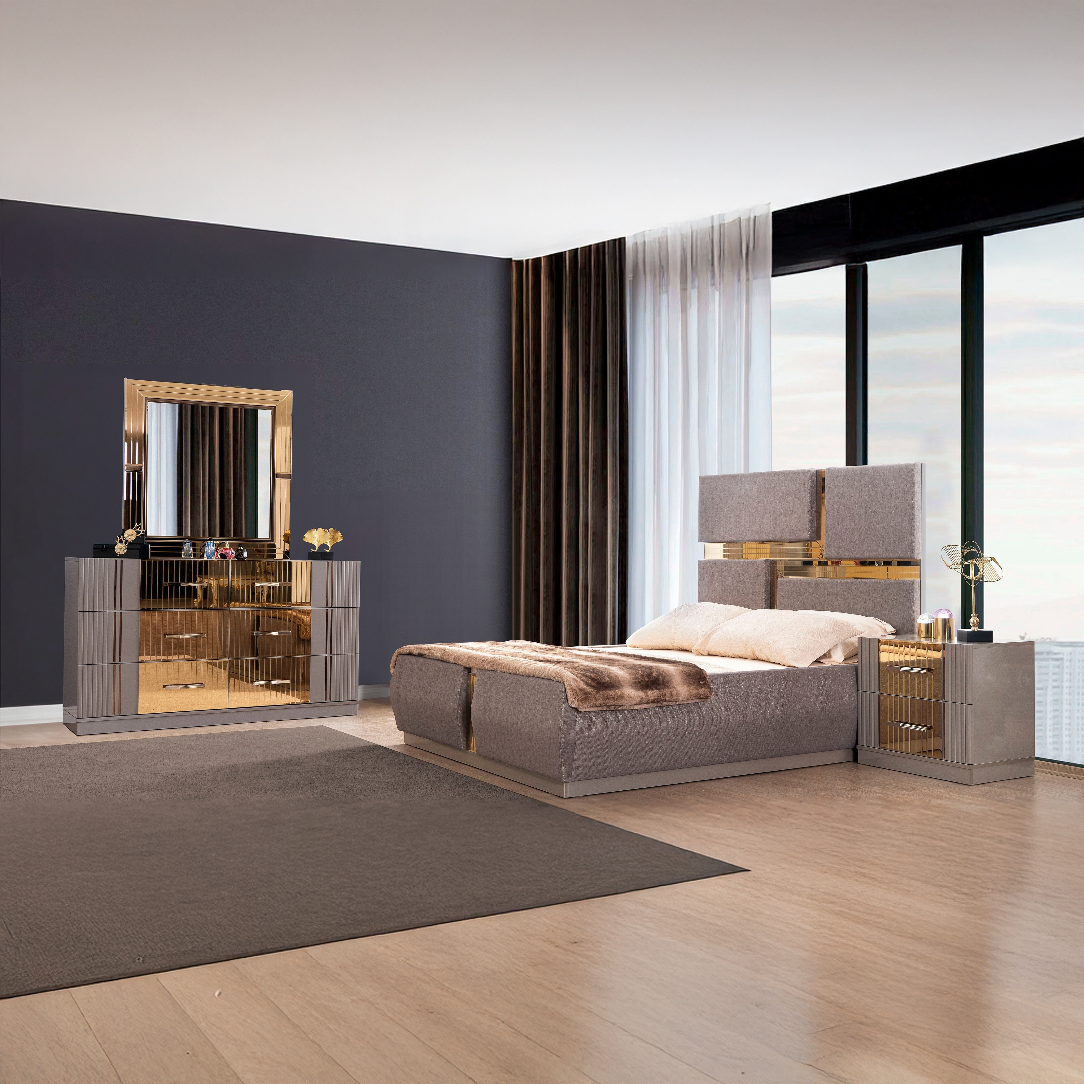 Eray 4-piece Bedroom Set (Bed Frame + Headboard+ 2 Nightstand + Dresser With Mirror)
