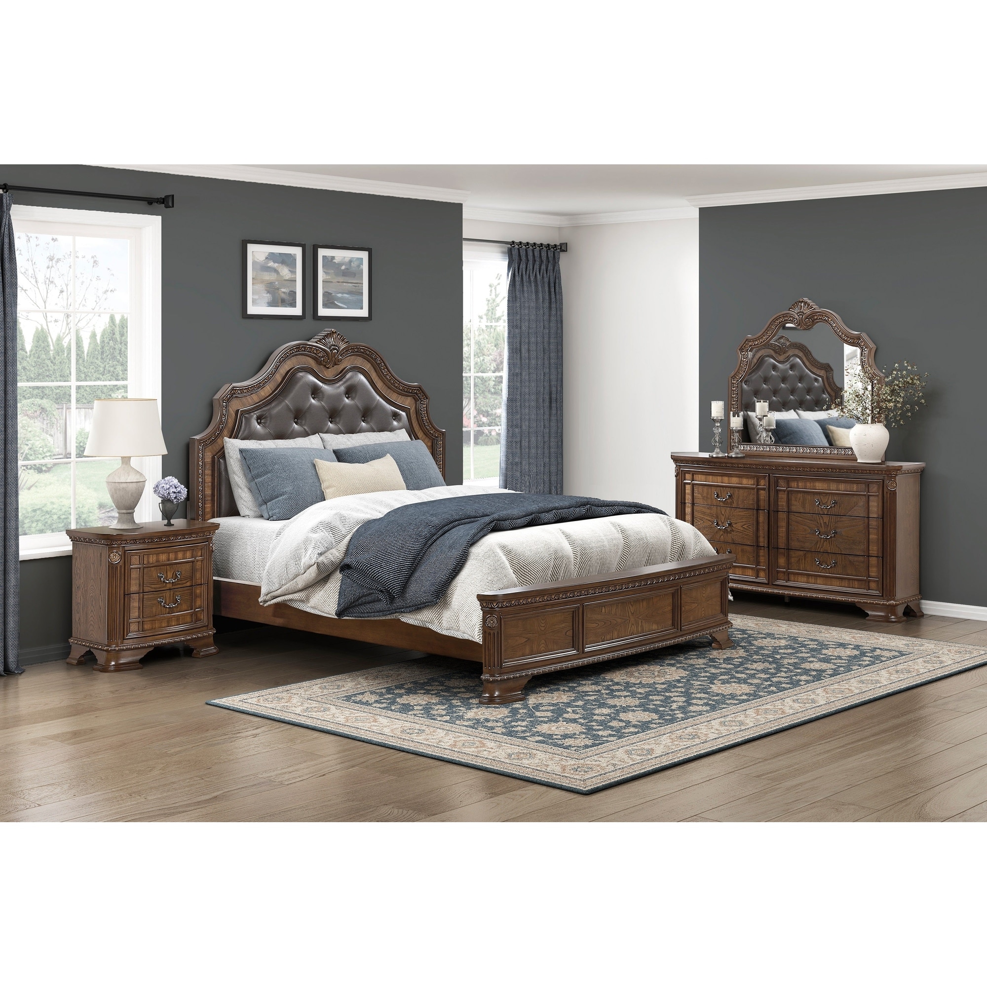 Traditional Furniture Bedroom Set Dark Brown Finish Bed Nightstand Dresser Mirror