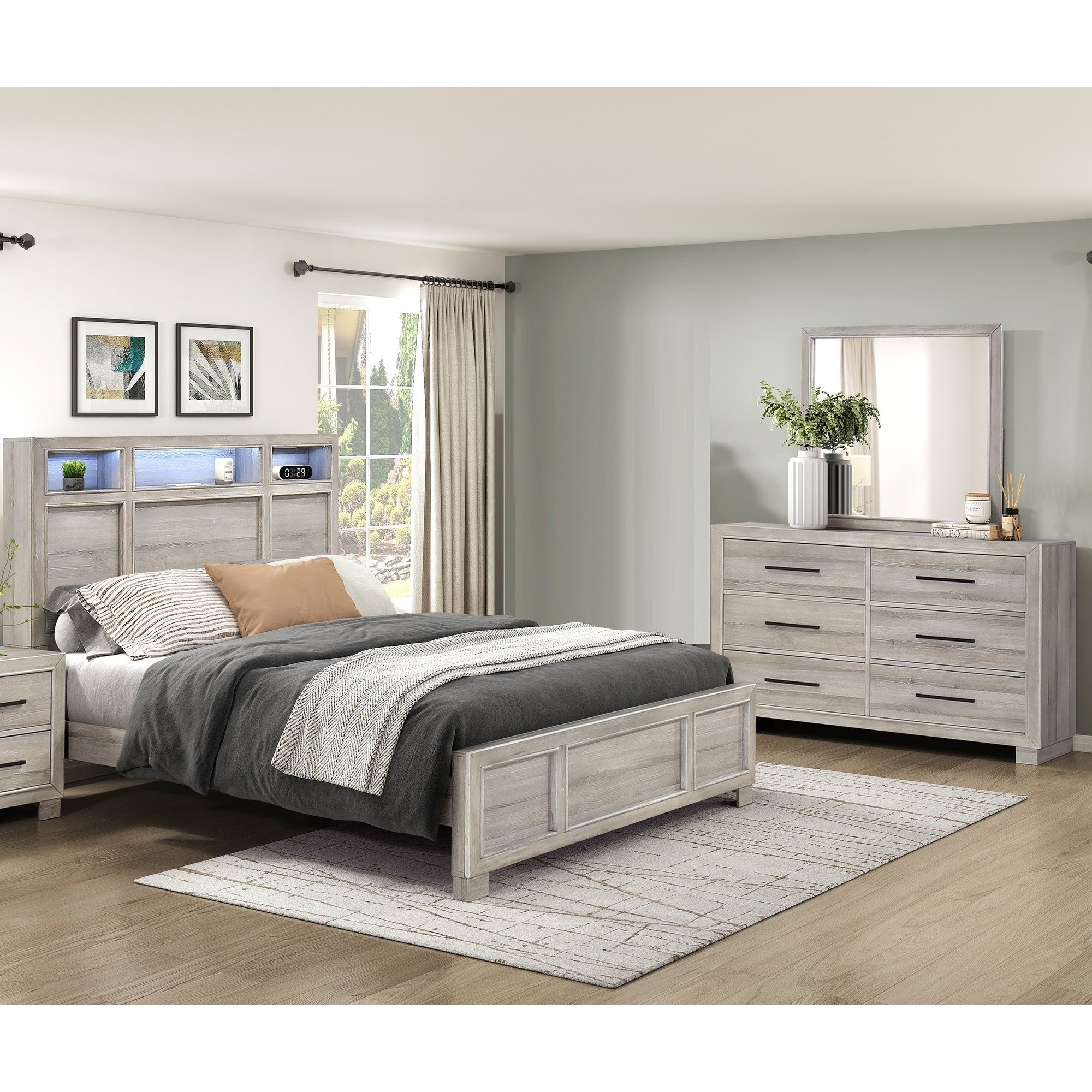 Modern Bedroom Furniture 3pc Set Bed Dresser Mirror Gray Finish