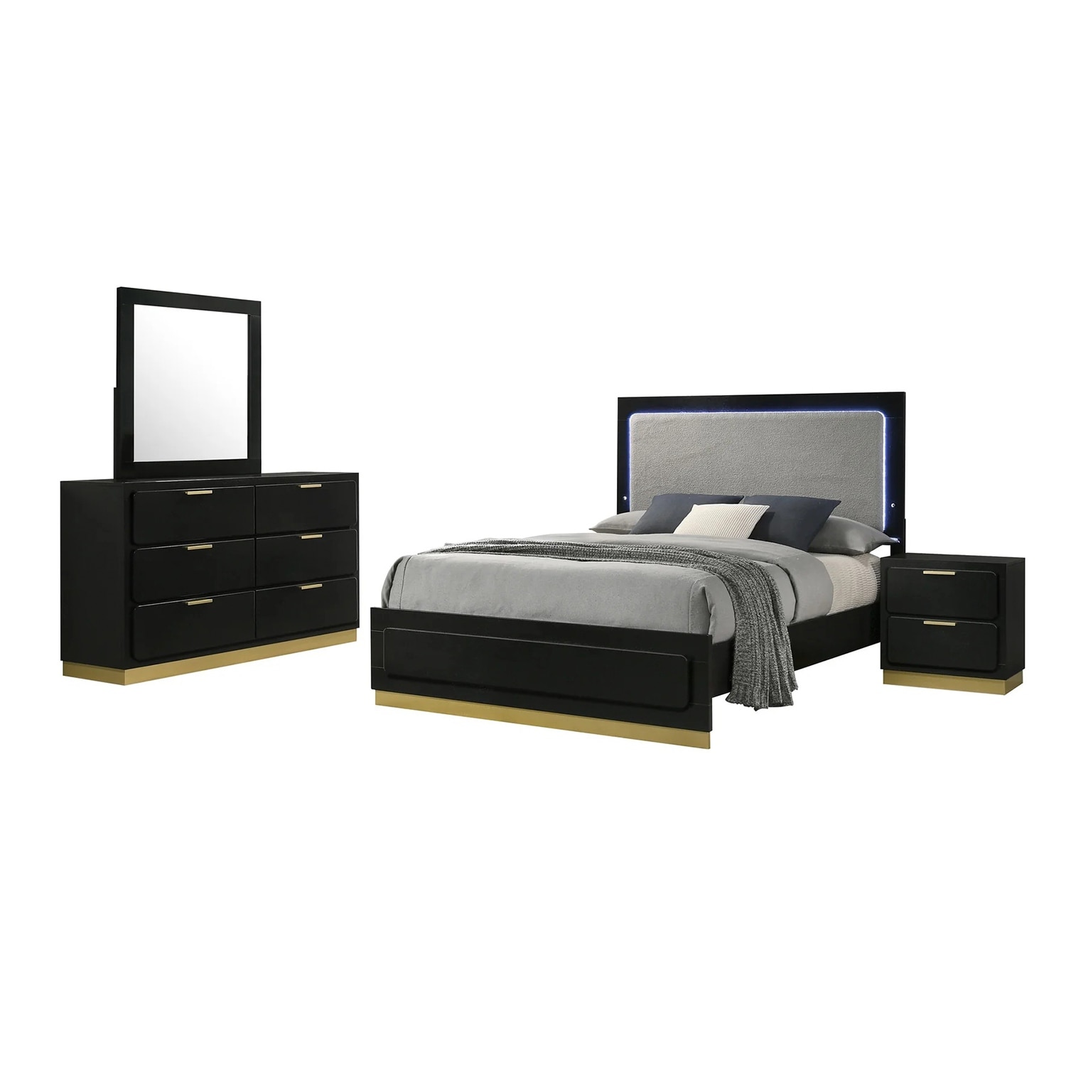Upholstered Queen with LED Headboard in Black and Gold