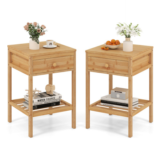Costway Set of 1/2 Bamboo Nightstand Bedside Table with Storage Drawer and Open Shelf-2 pieces