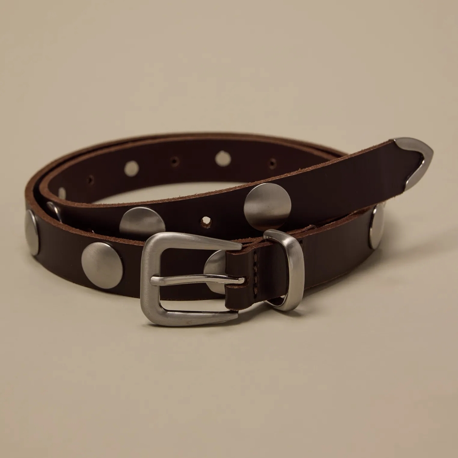 Lucky Brand Leather Belt With Oversized Studds - Women's Accessories Belts in Dark Brown, Size S