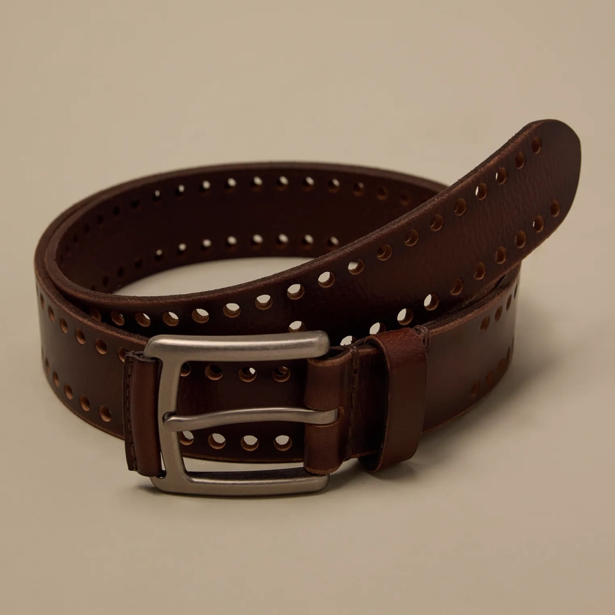 Lucky Brand Perforated Leather Belt - Men's Accessories Belts in Dark Brown, Size 38