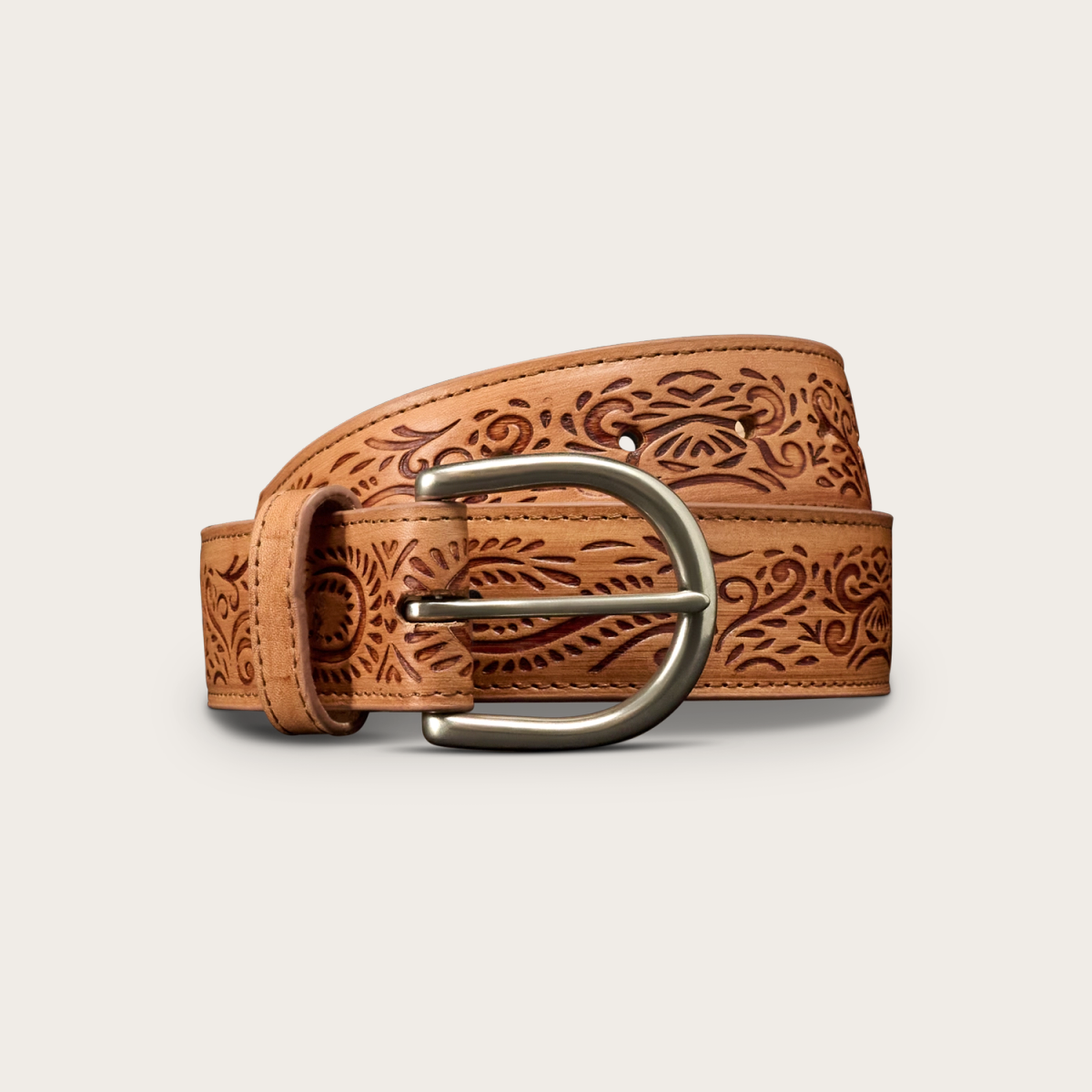 Tecovas Women's Embossed Belt, Tan, Cowhide, Size Small