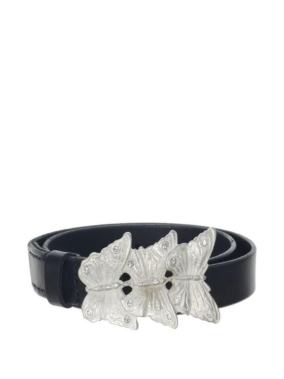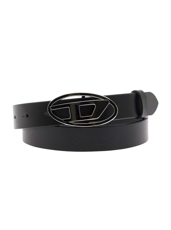 Polished Oval Buckle Leather Belt - Black - DIESEL Belts