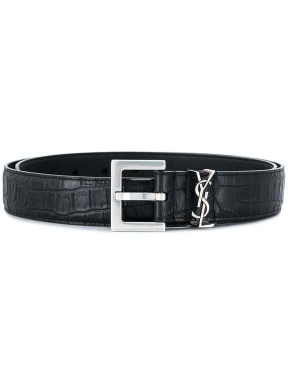 Insignia Crocodile-embossed Leather Belt - Black - Saint Laurent Belts