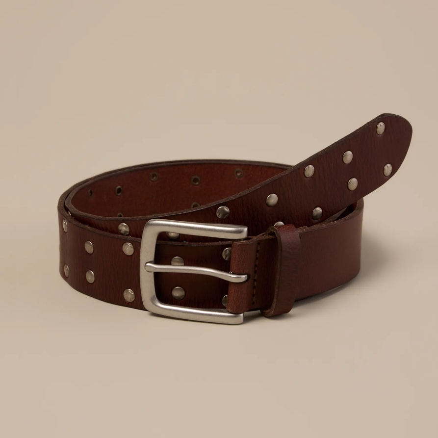 Lucky Brand Leather Jean Belt With Roller Buckle And Rivets - Men's Accessories Belts in Dark Brown, Size 32