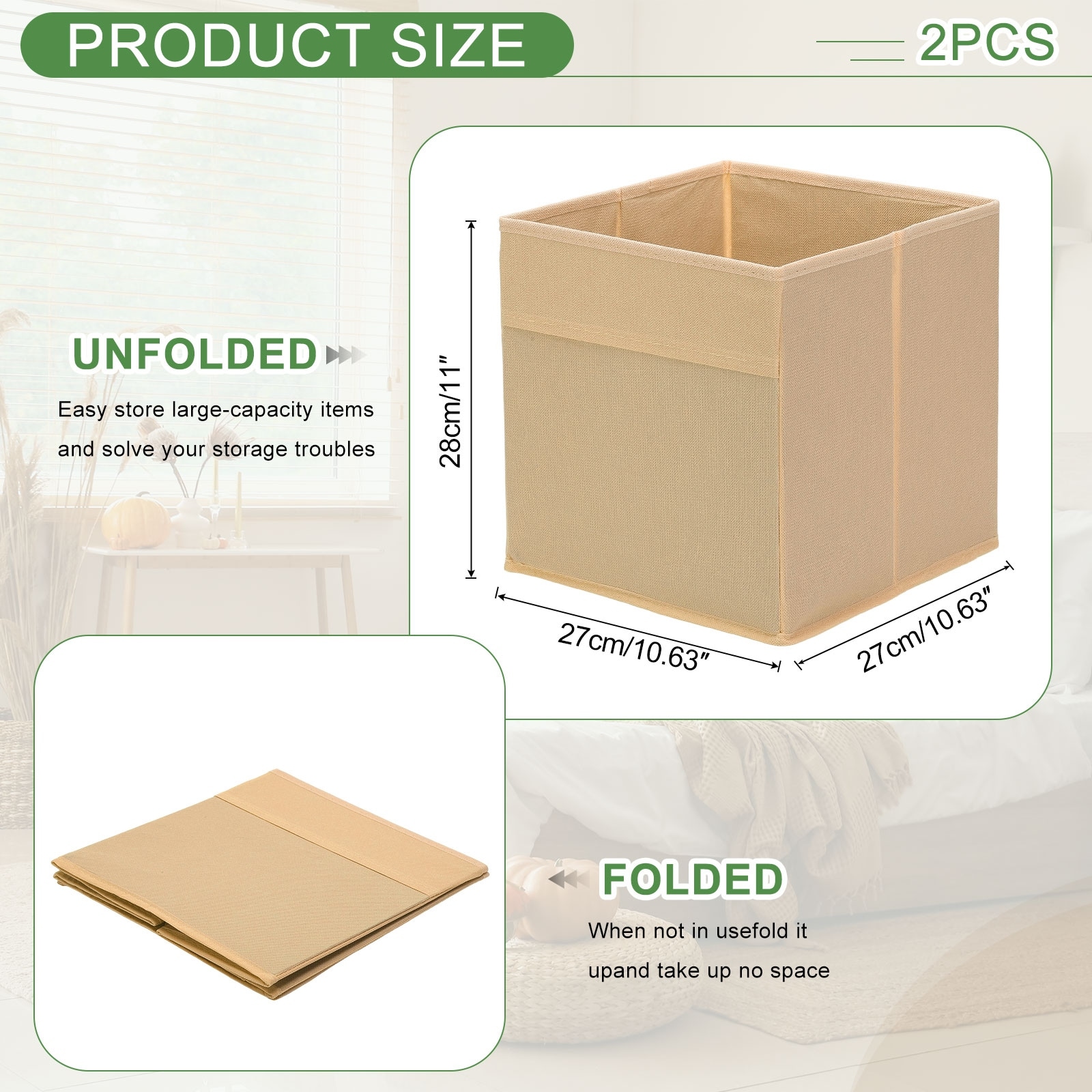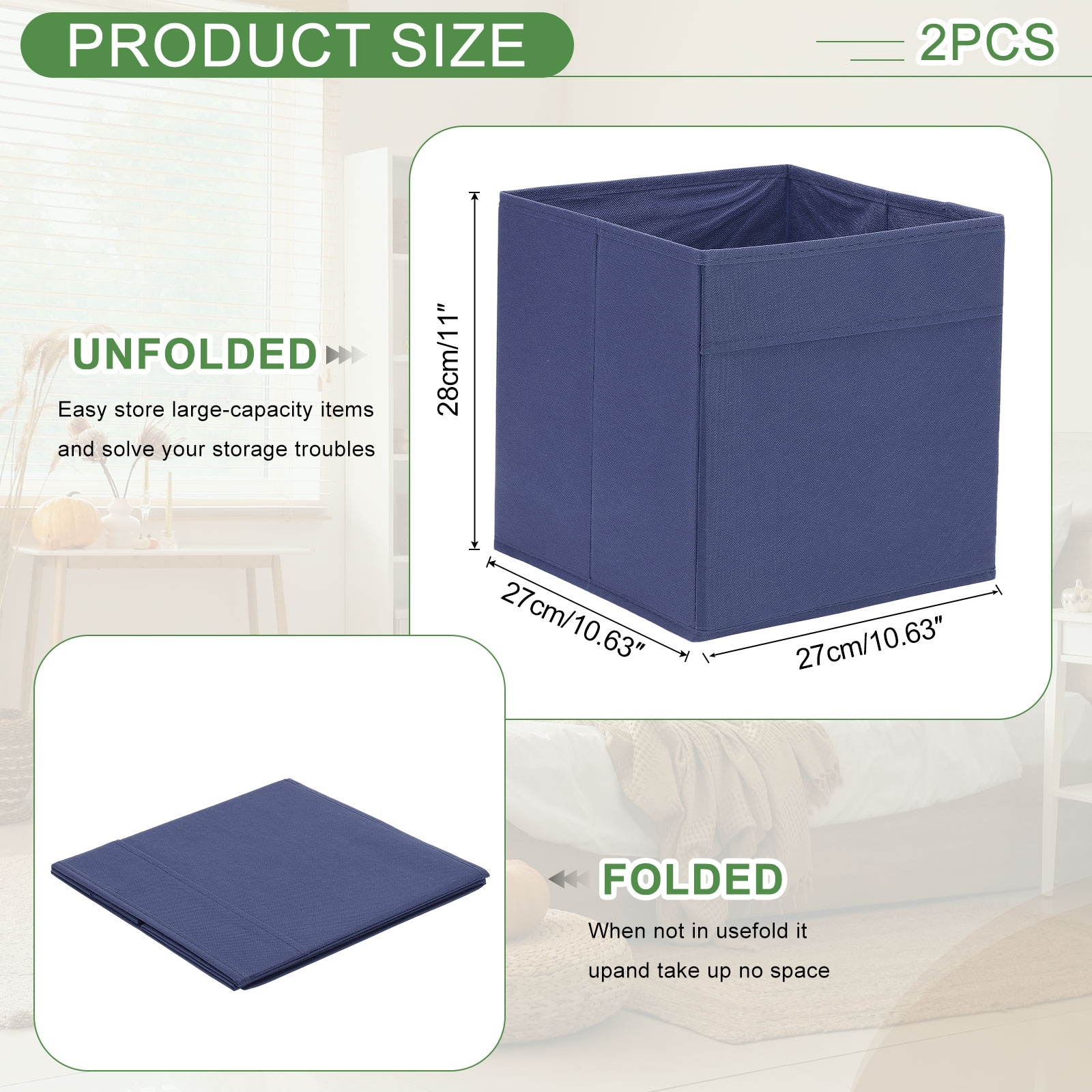 Fabric Storage Bins, Foldable Storage Cube Organizer Bins for Shelf Closet - 10.6 x 10.6 x 11in