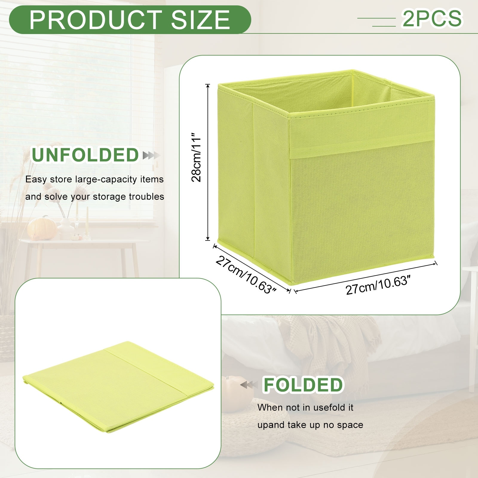 Fabric Storage Bins, Foldable Storage Cube Organizer Bins for Shelf Closet - 10.6 x 10.6 x 11in