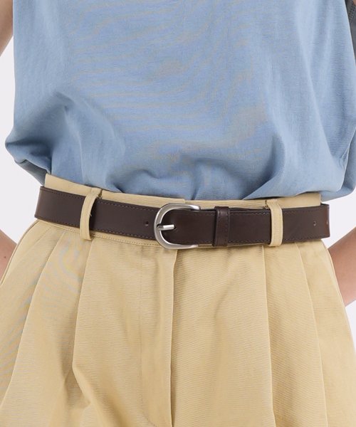 theabon W23 Mac Basic Round Buckle Real Leather Belt Brown