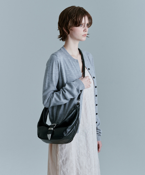 Marge Sherwood BELTED HOBO MEDIUM_black glossy plain