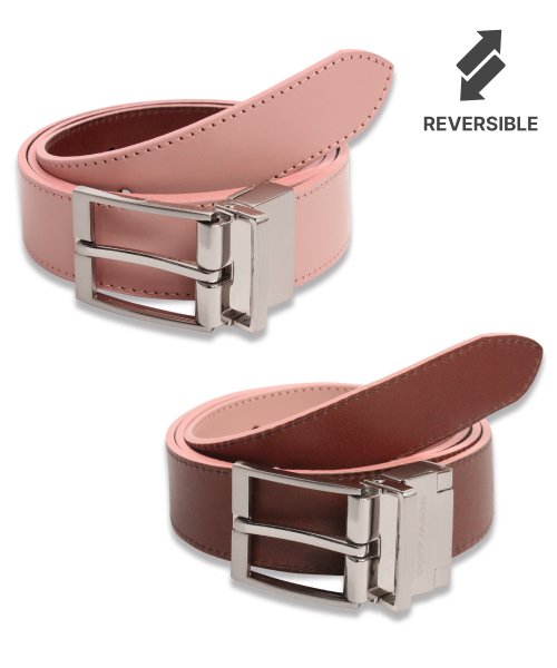 doffjason Cowhide Reversible Hard Leather Belt BROWN/PINK