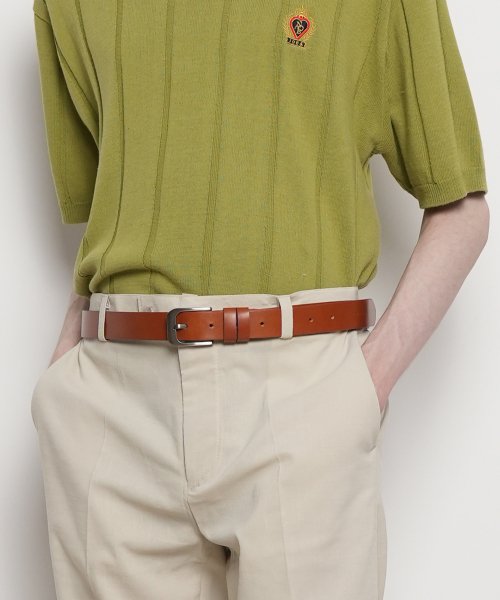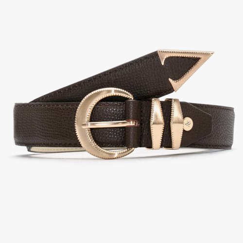 theabon M23 Big Wave Buckle Real Leather Belt Brown