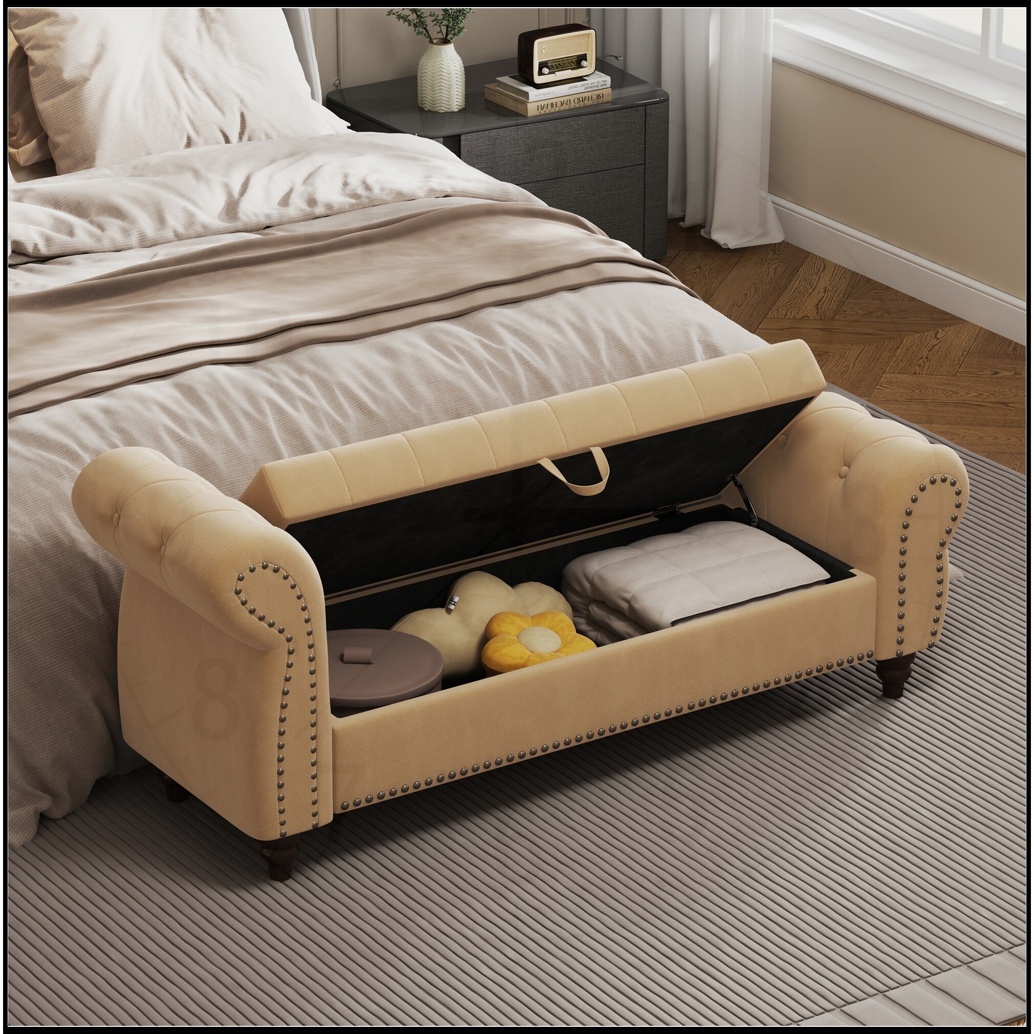 64.5" Bed Bench for Bed Room Nails Tufted Chaise of Lounge