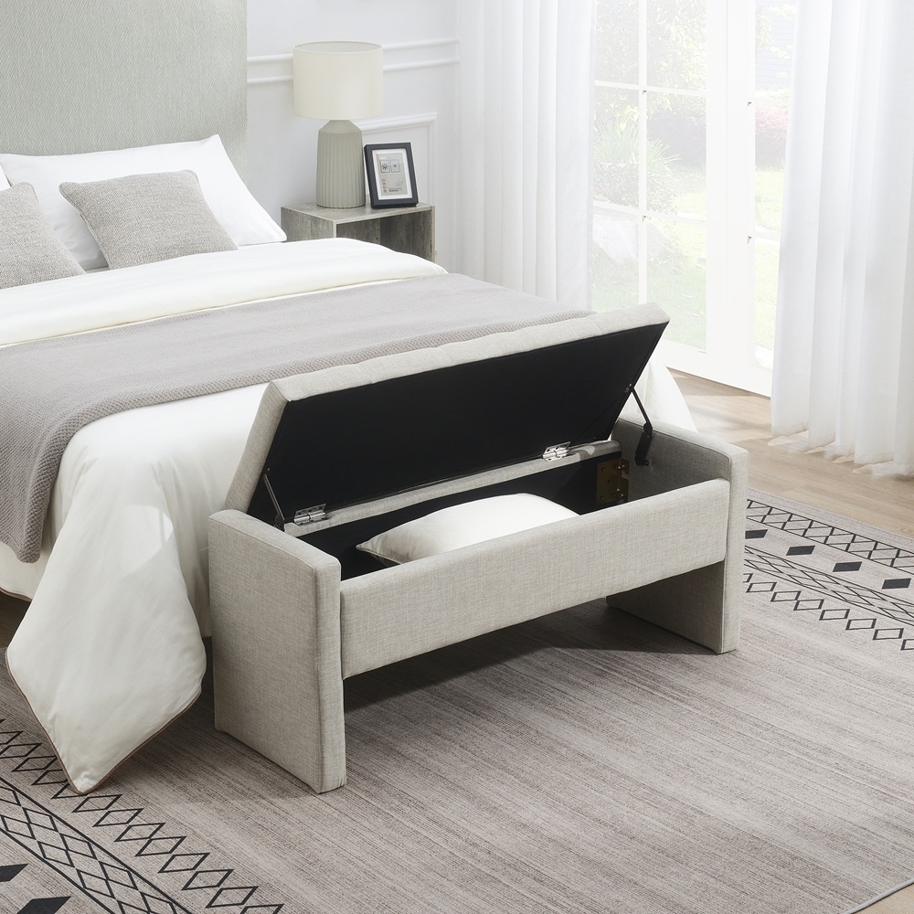 TREXM Farmhouse Upholstered Storage Bench with Hidden Compartment