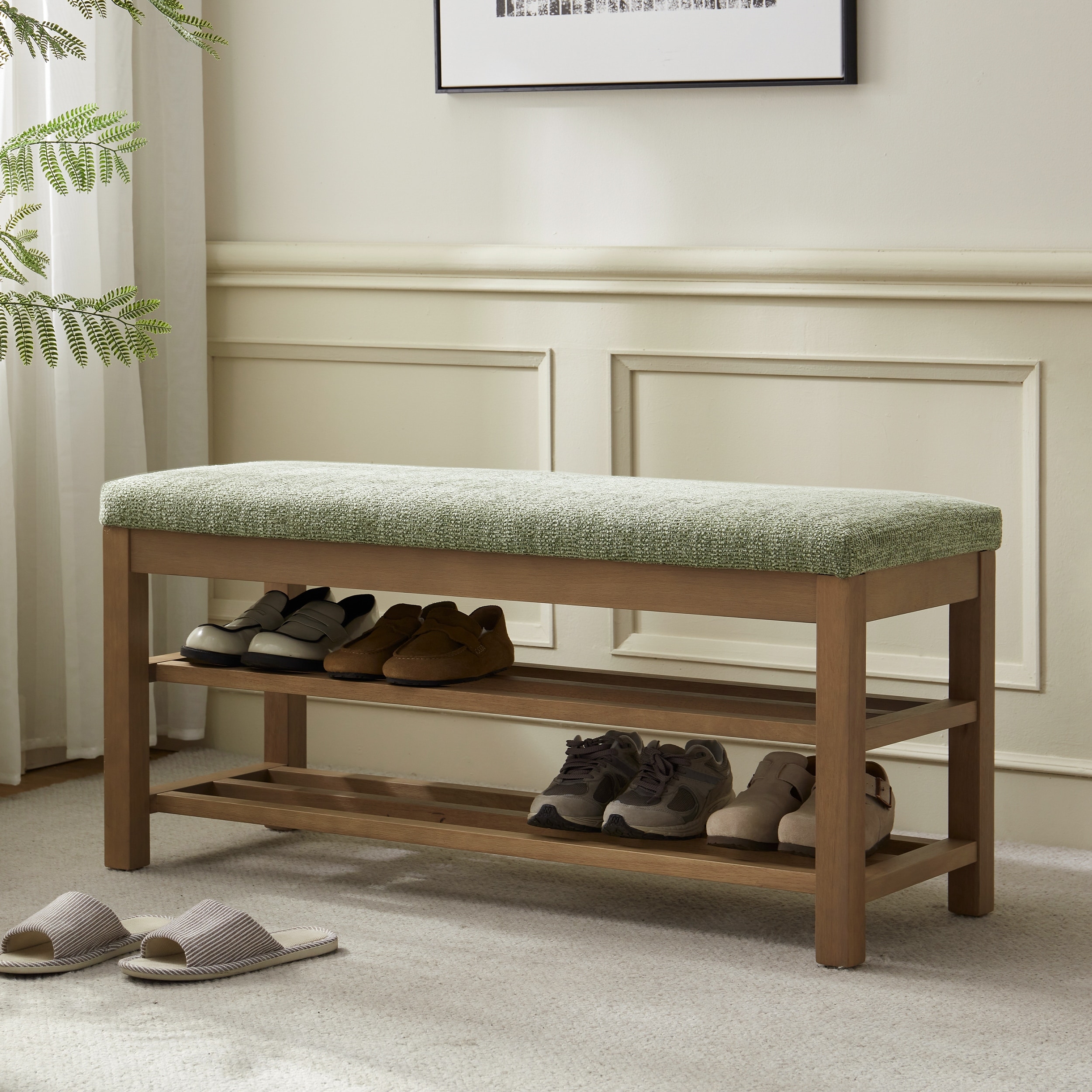 Upholstered Solid Wood Double Layer Shoe Bench