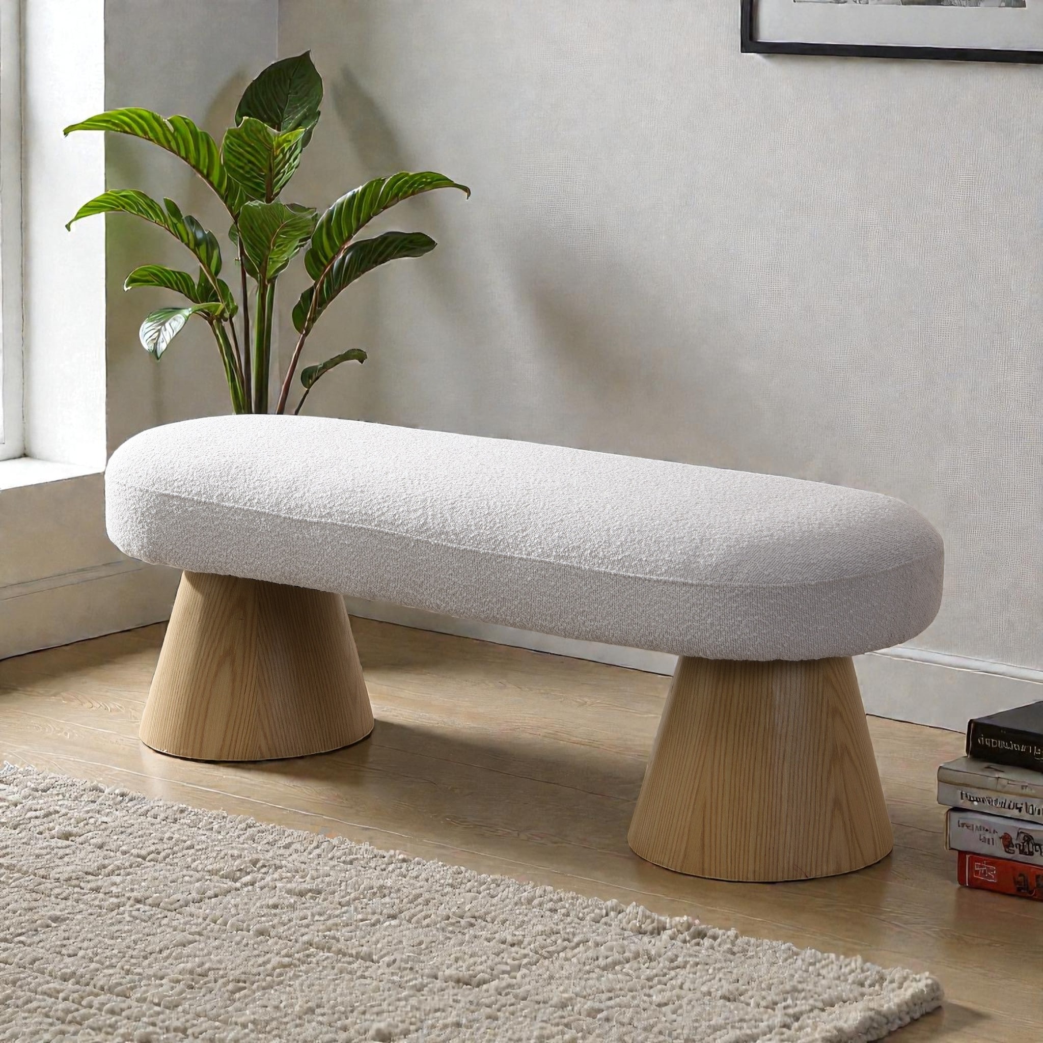 49" Upholstered Entryway and Dining Bench with Foam Seat and Wood Legs, Bedroom or End of Bed Fabric Bench for Living Room