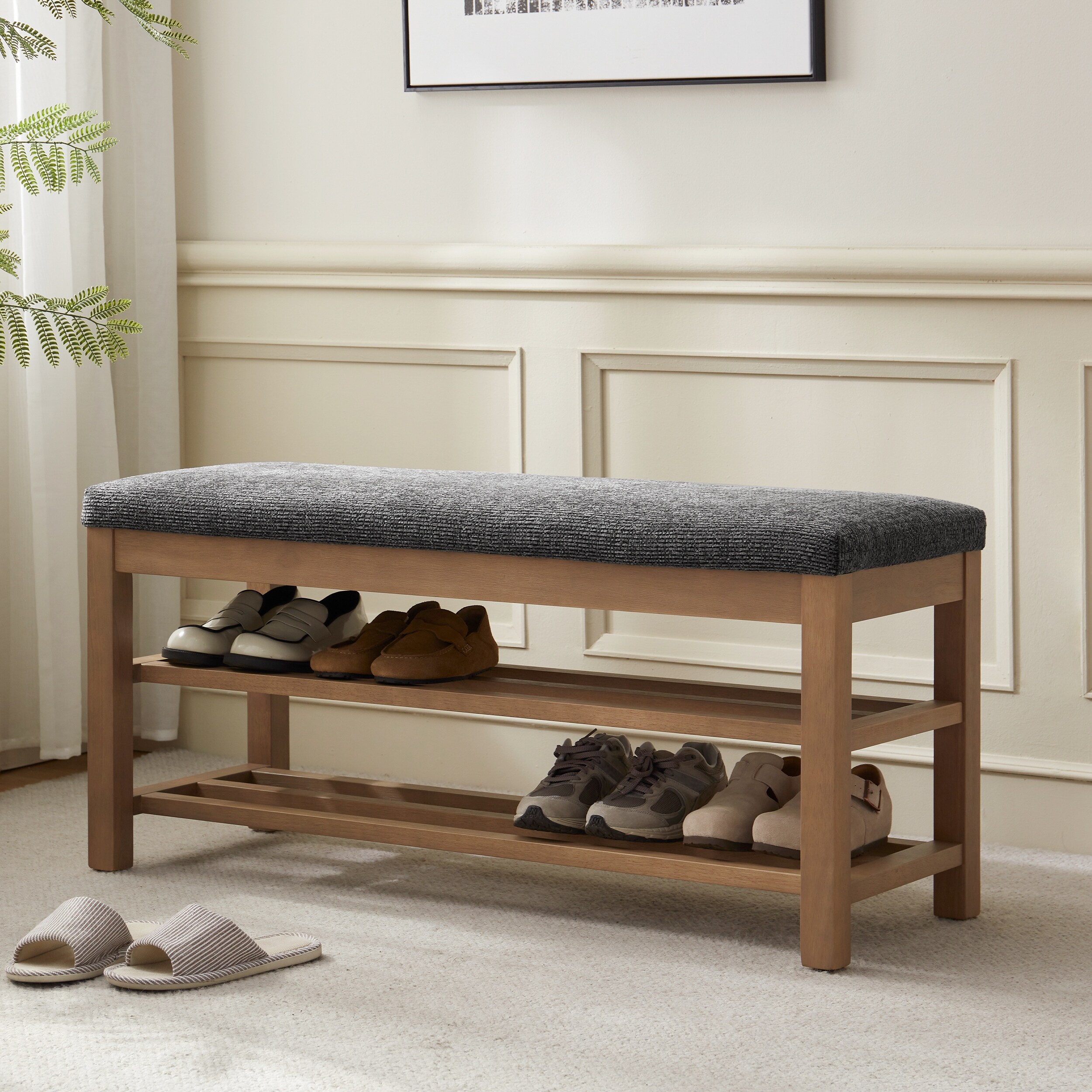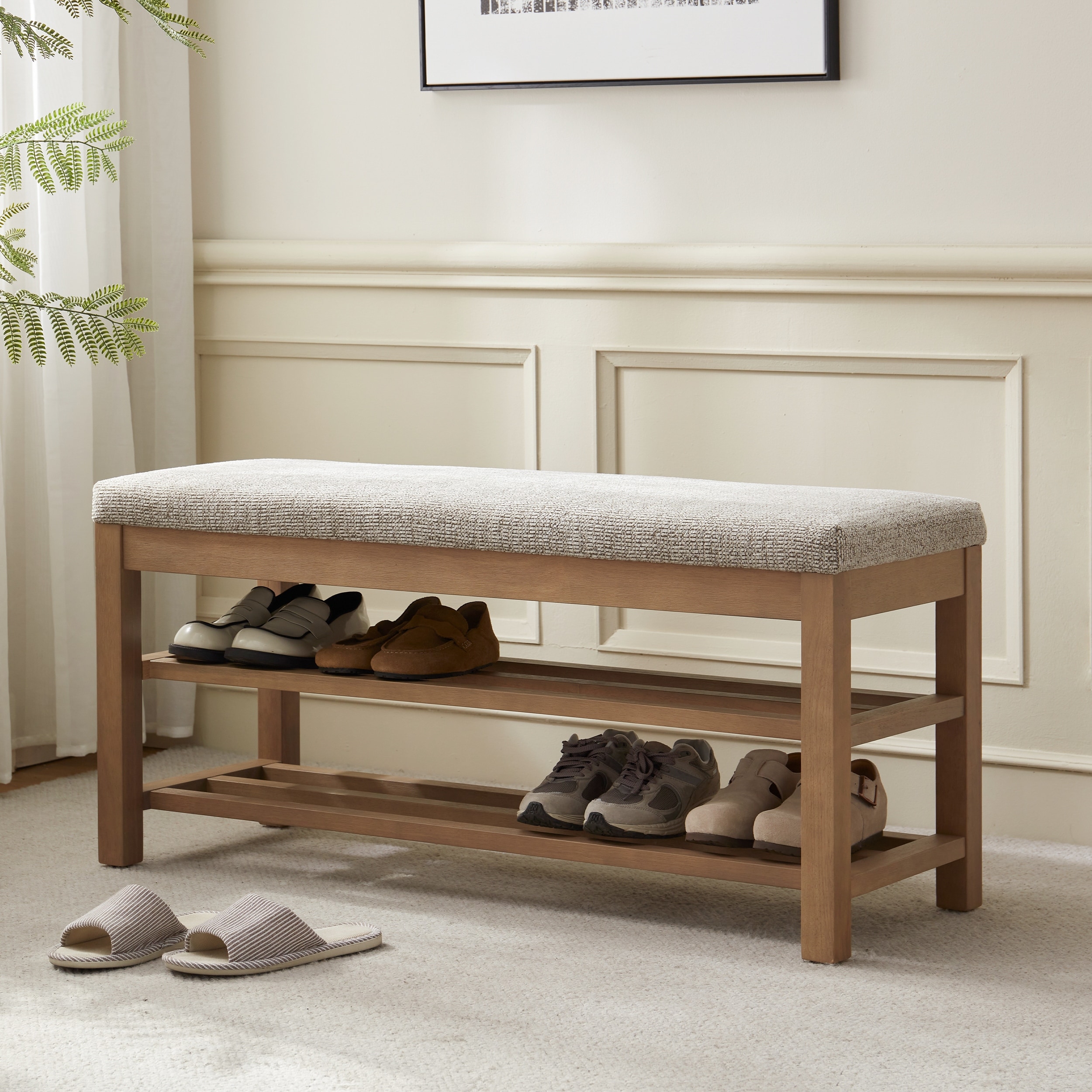 Comfortable Ottoman Bench Upholstered Seat with Solid Wood Frame, Entryway Footrest Seat with One Shelf at Bottom