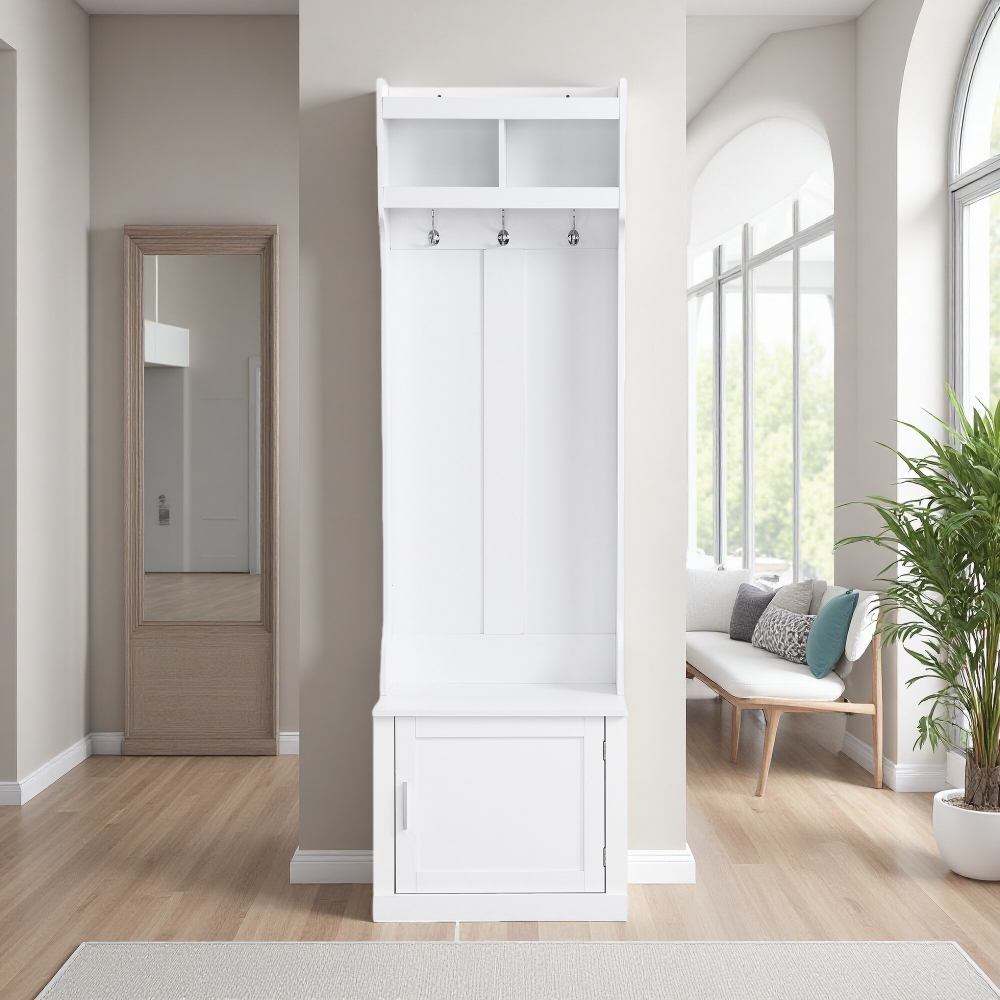 78.7"H Slim Hall Tree with Cabinet & 6 Hanging Hooks, Multi-functional Storage Bench and Coat Rack for Hallway & Living Room