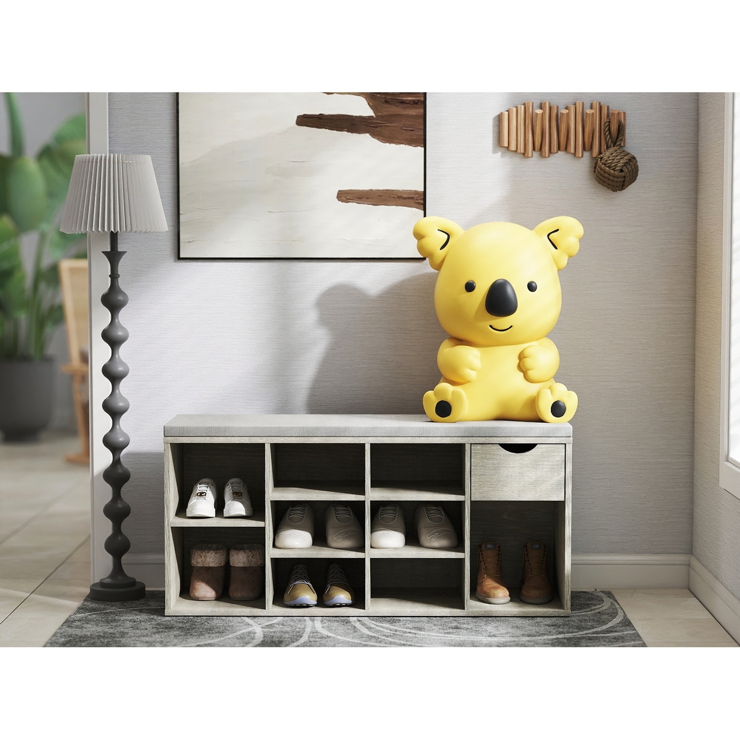 Storage Shoe Bench with 2 Drawers, 2 Cabinets, Removable Cushion, Living Room, Entryway