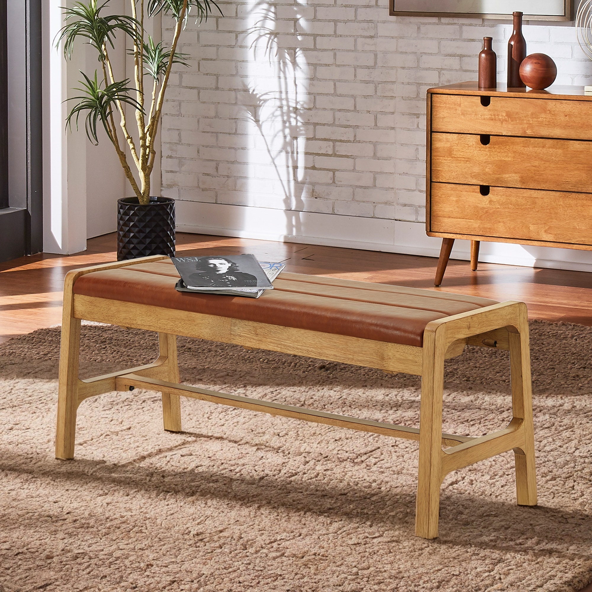 Roomfitters Mid-Century Upholstered Tufted Bench with Tapered Wood Legs, Accent Seating for Entryway or Bedroom, Orange