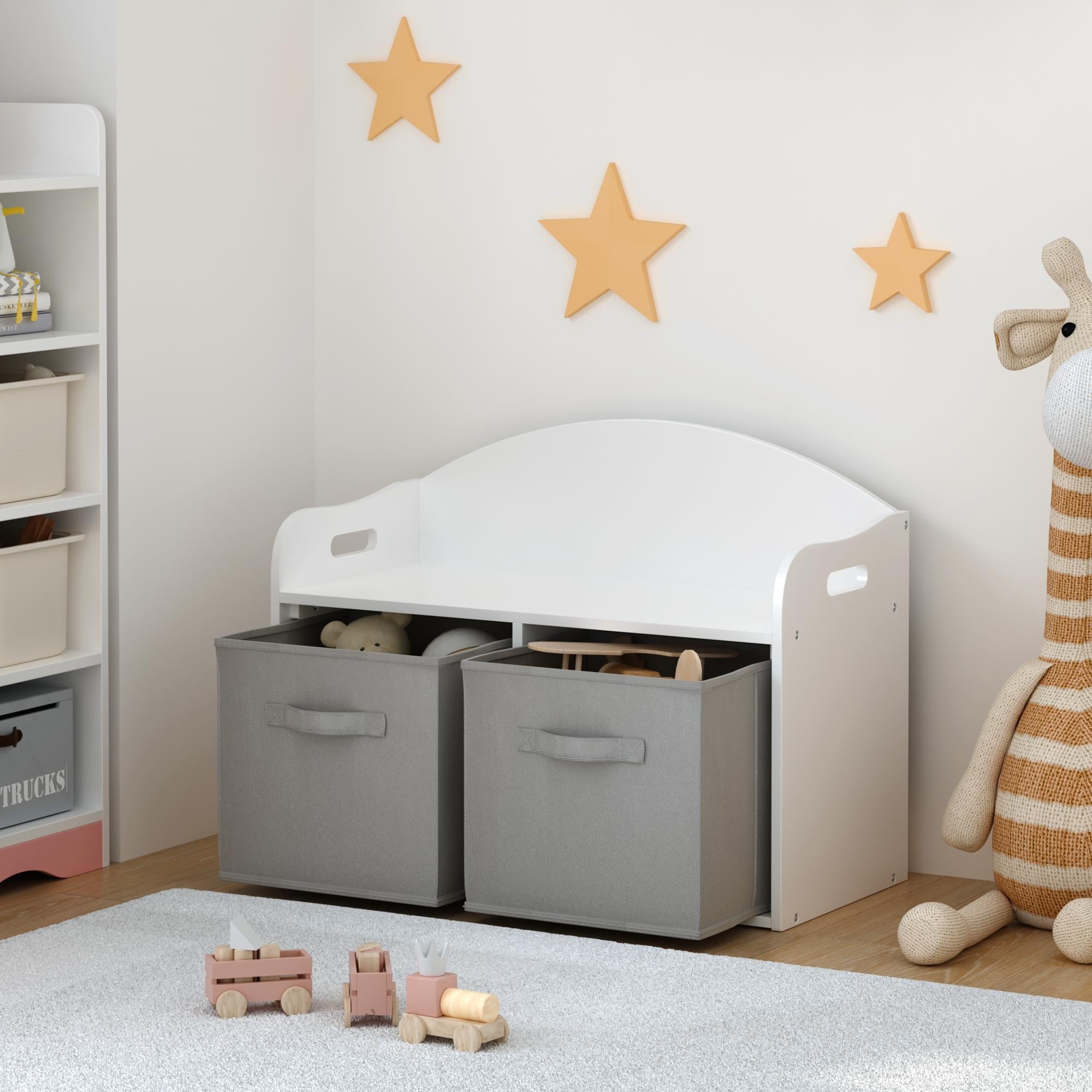 Kids Wooden Toy Box/Bench with Collapsible Fabric Drawers,Toy Storage Cabinet Organizer, White