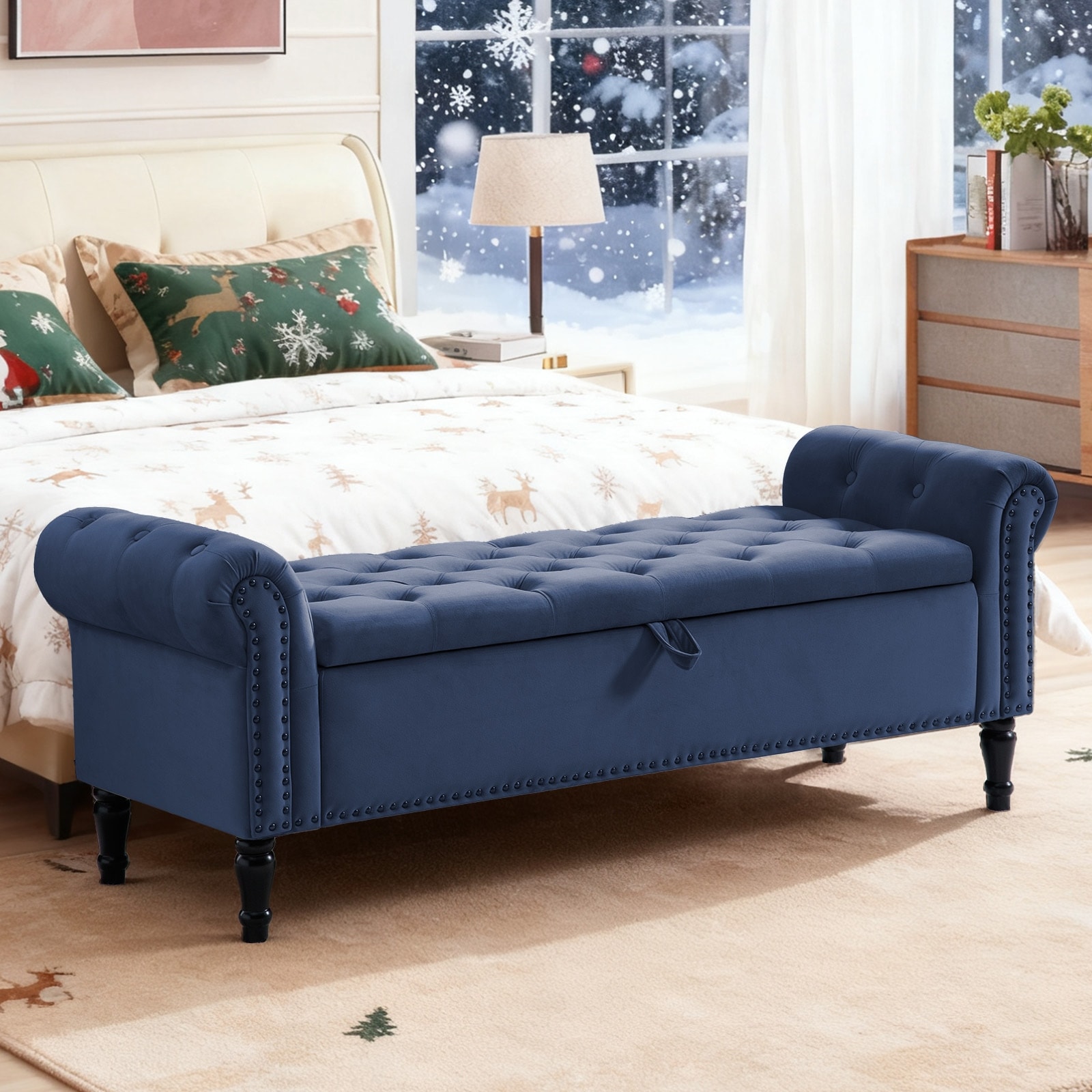67" Velvet Tufted Storage Bench for Bedroom End of Bed with Roll Arms