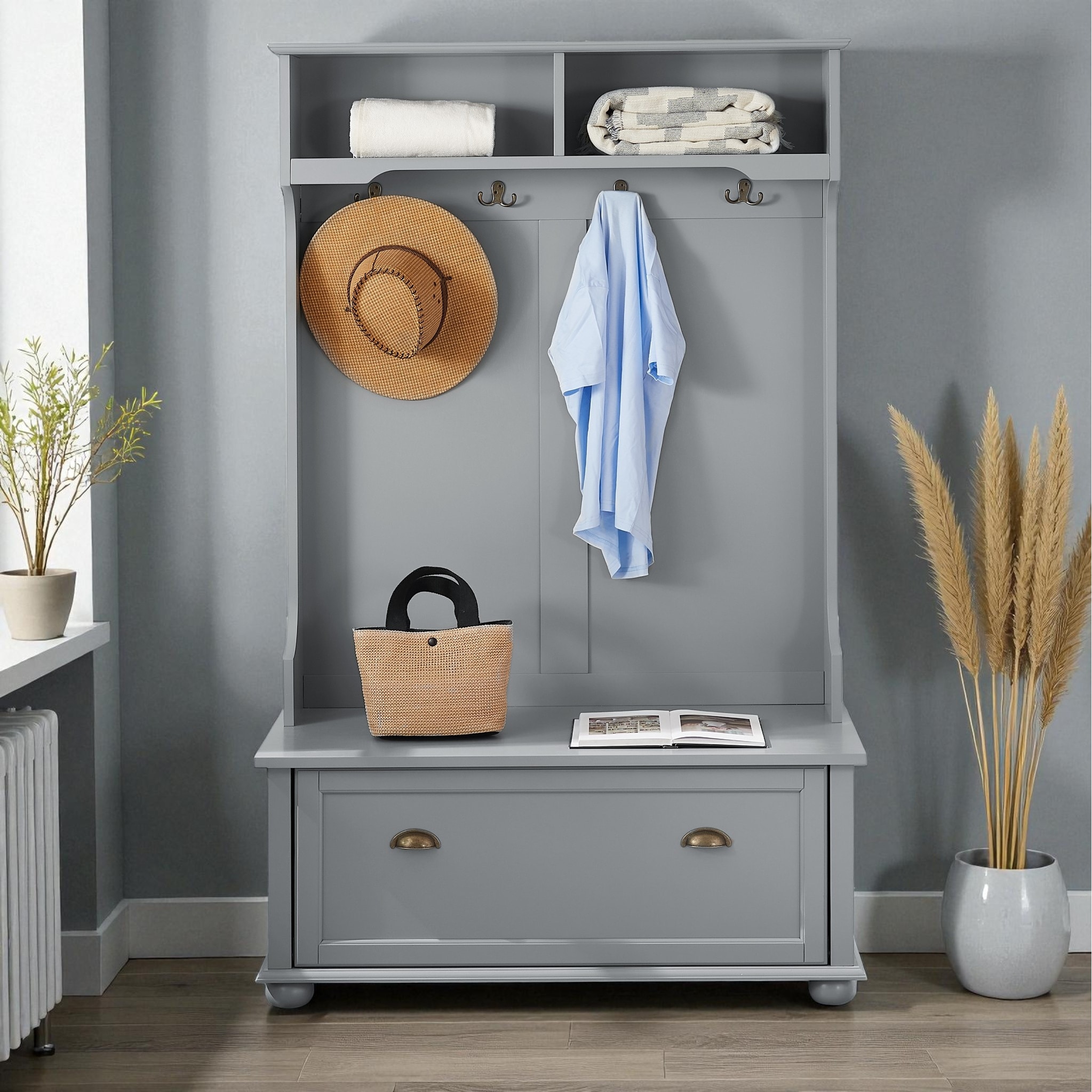 Hall Tree Hallway Storage Bench with Shoe Cubbies and Coat Rack with Hooks