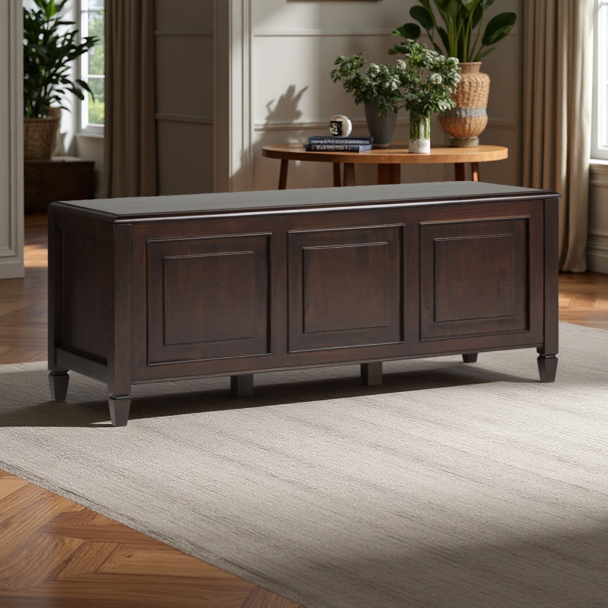 51"L Solid Wood Connaught Storage Bench Trunk with Lift-Up Lid, Three Spacious Compartments, Child Safety Hinges