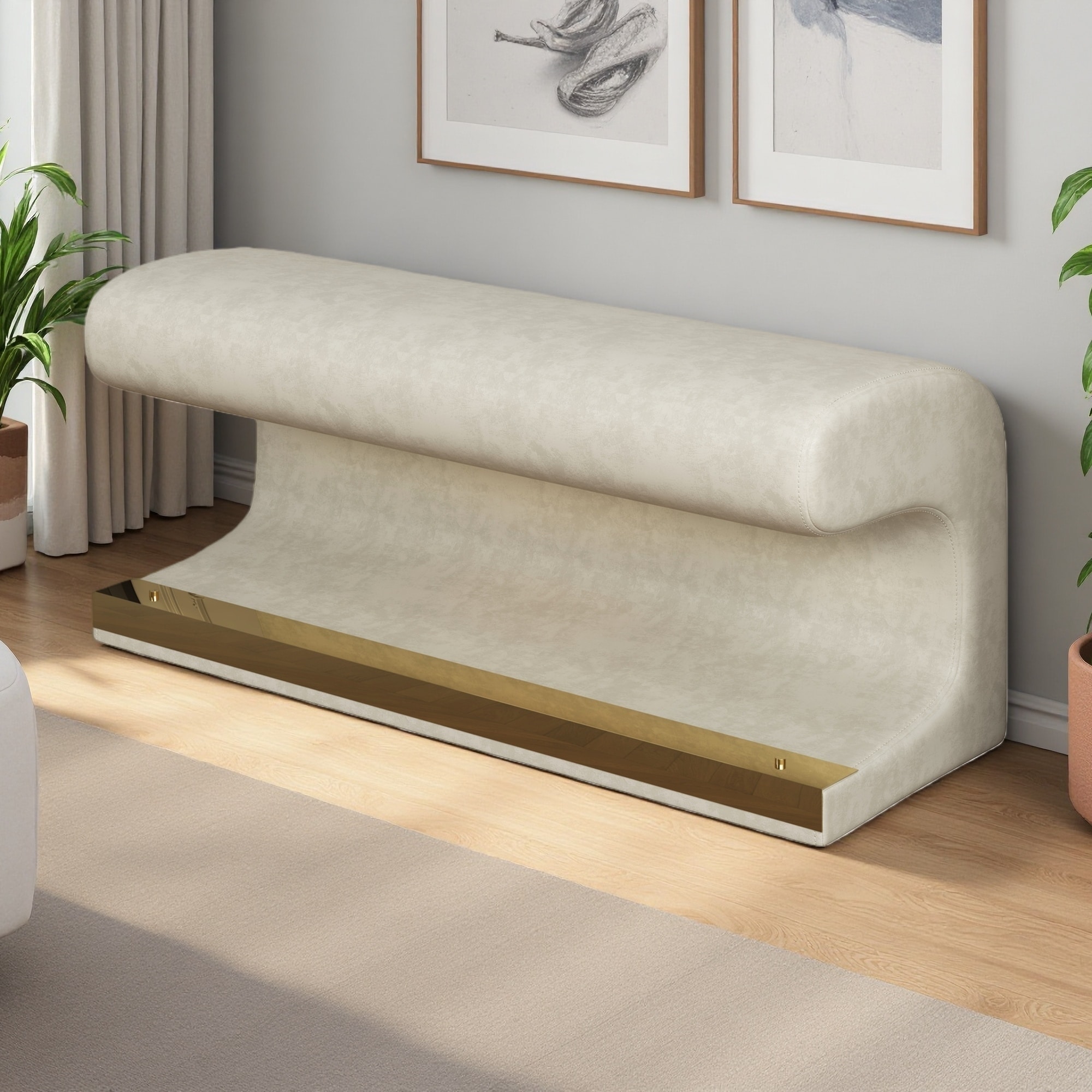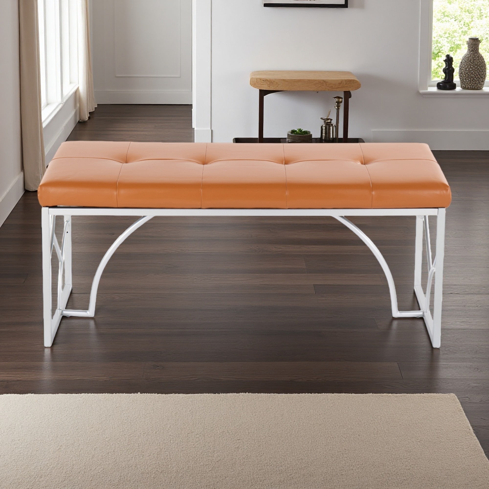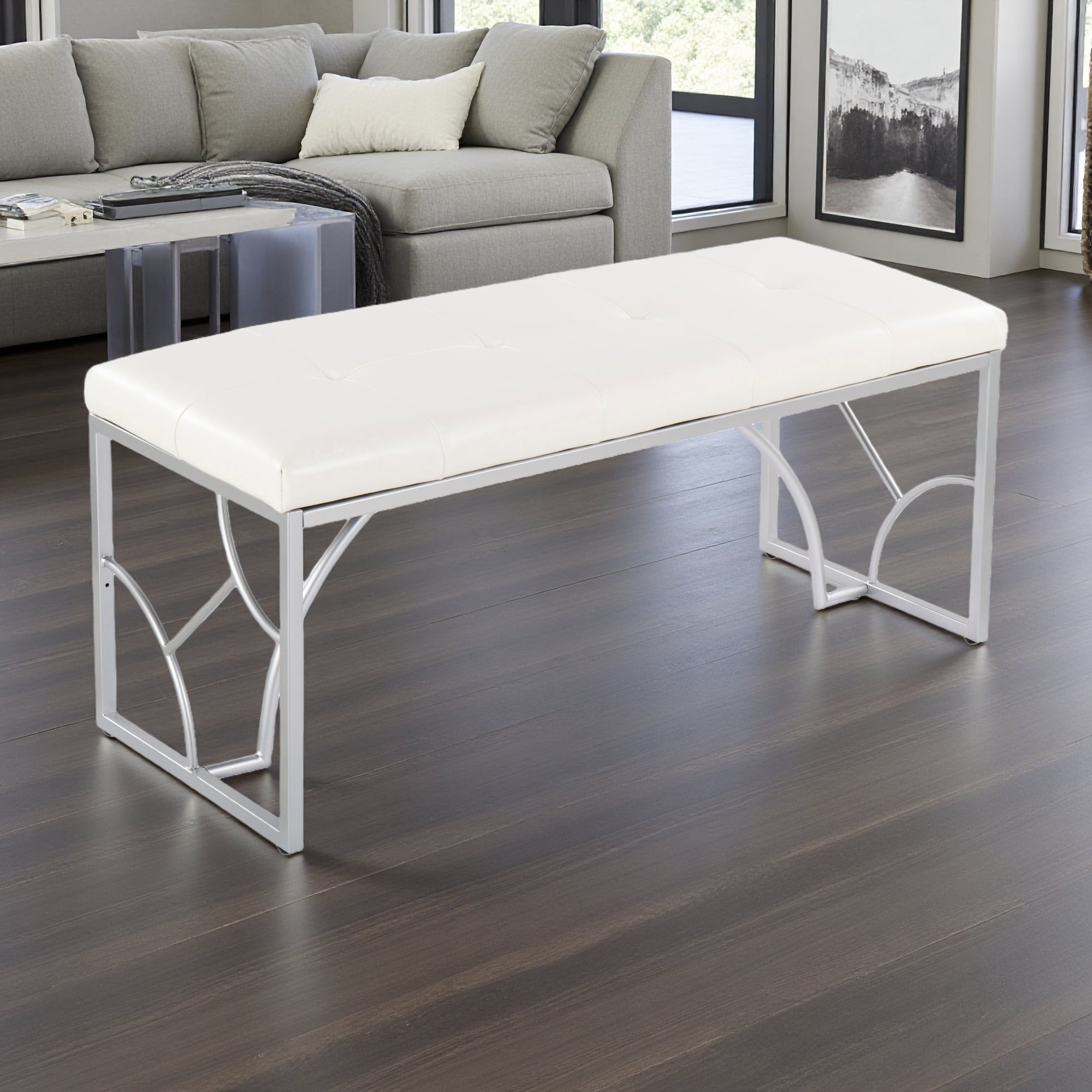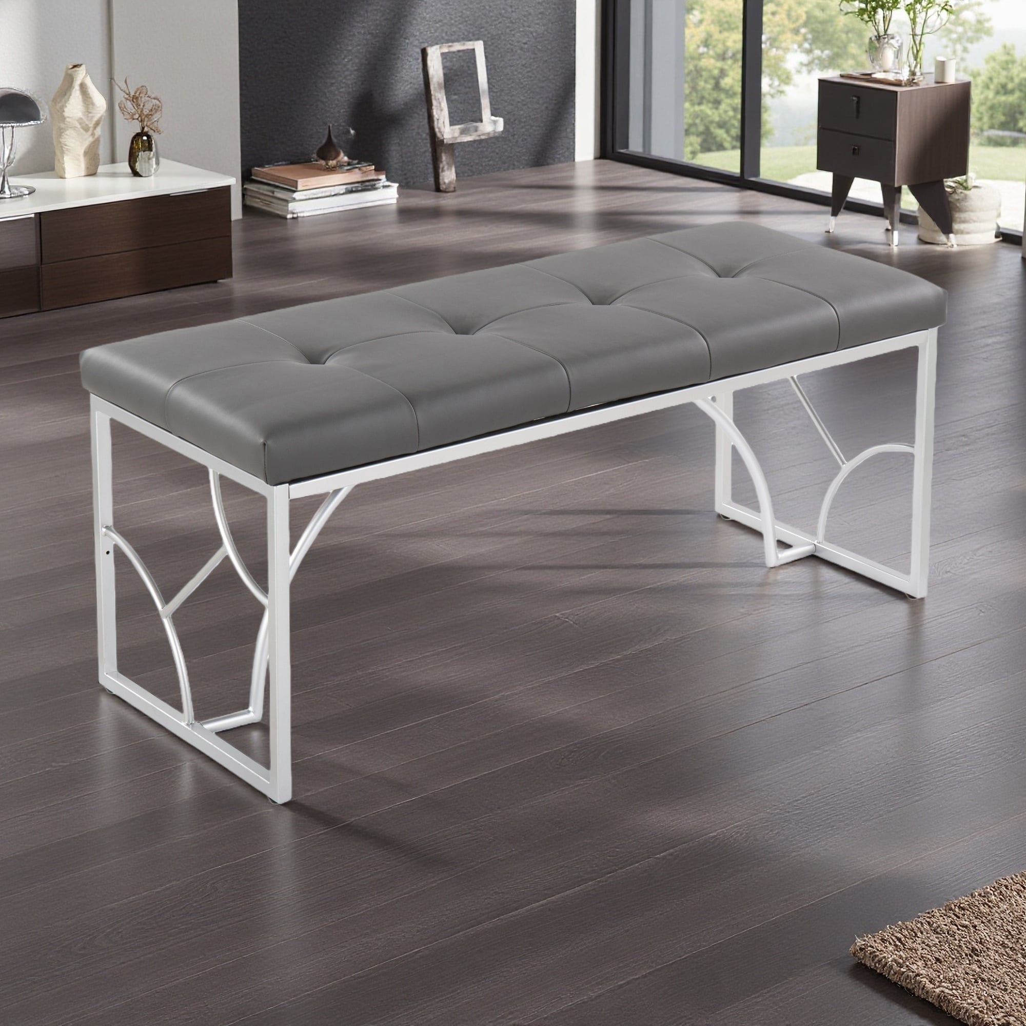 43.5"L Constellation Contemporary Bench in Metal and Faux Leather with Unique Frame Design and Plush Cushion