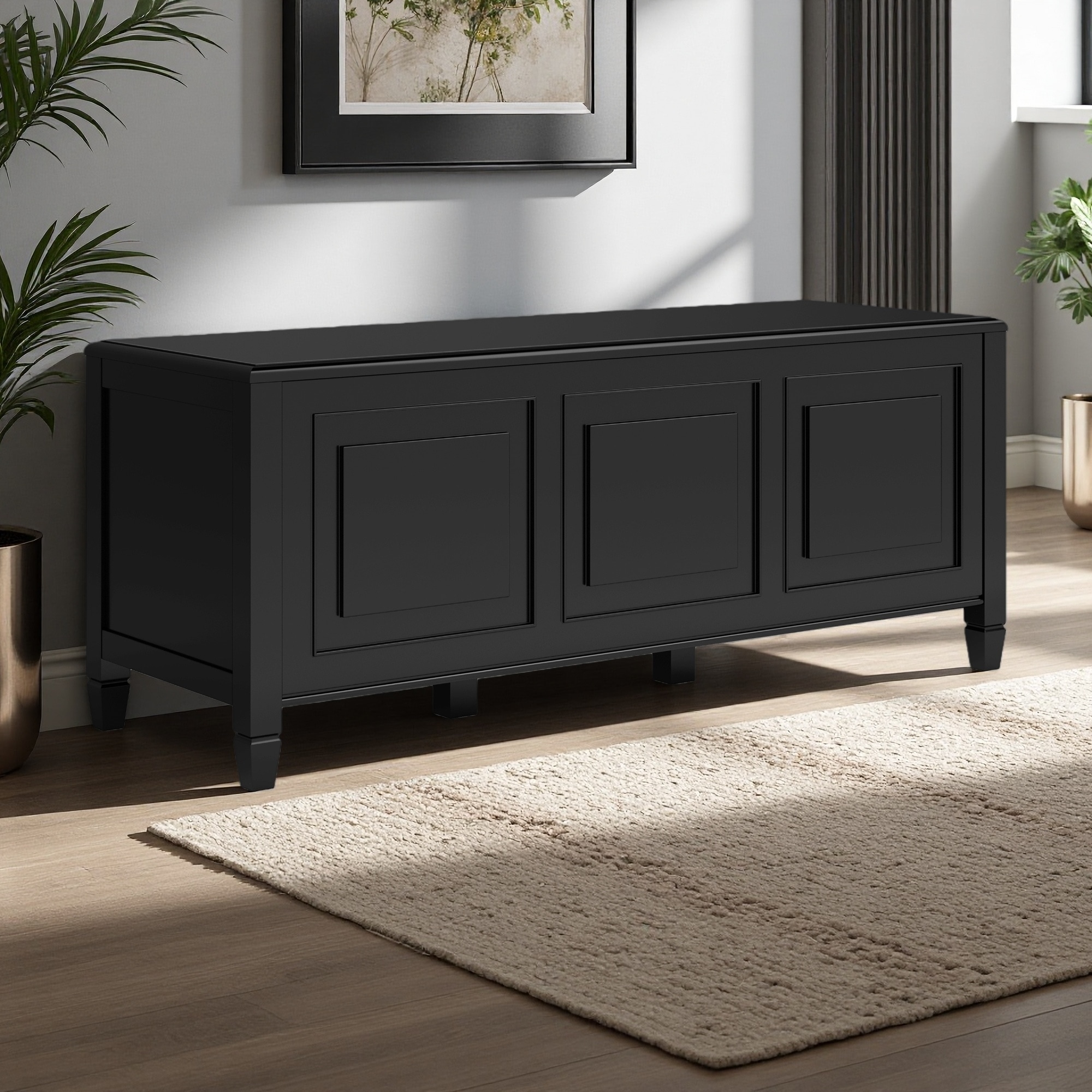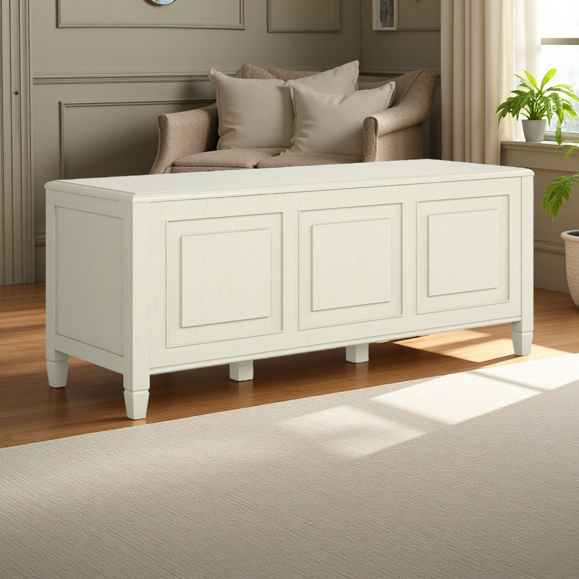 51"L Solid Wood Connaught Storage Bench Trunk with Lift-Up Lid, Three Spacious Compartments, Child Safety Hinges