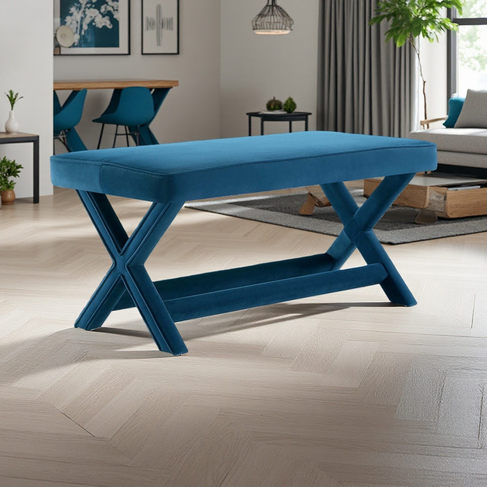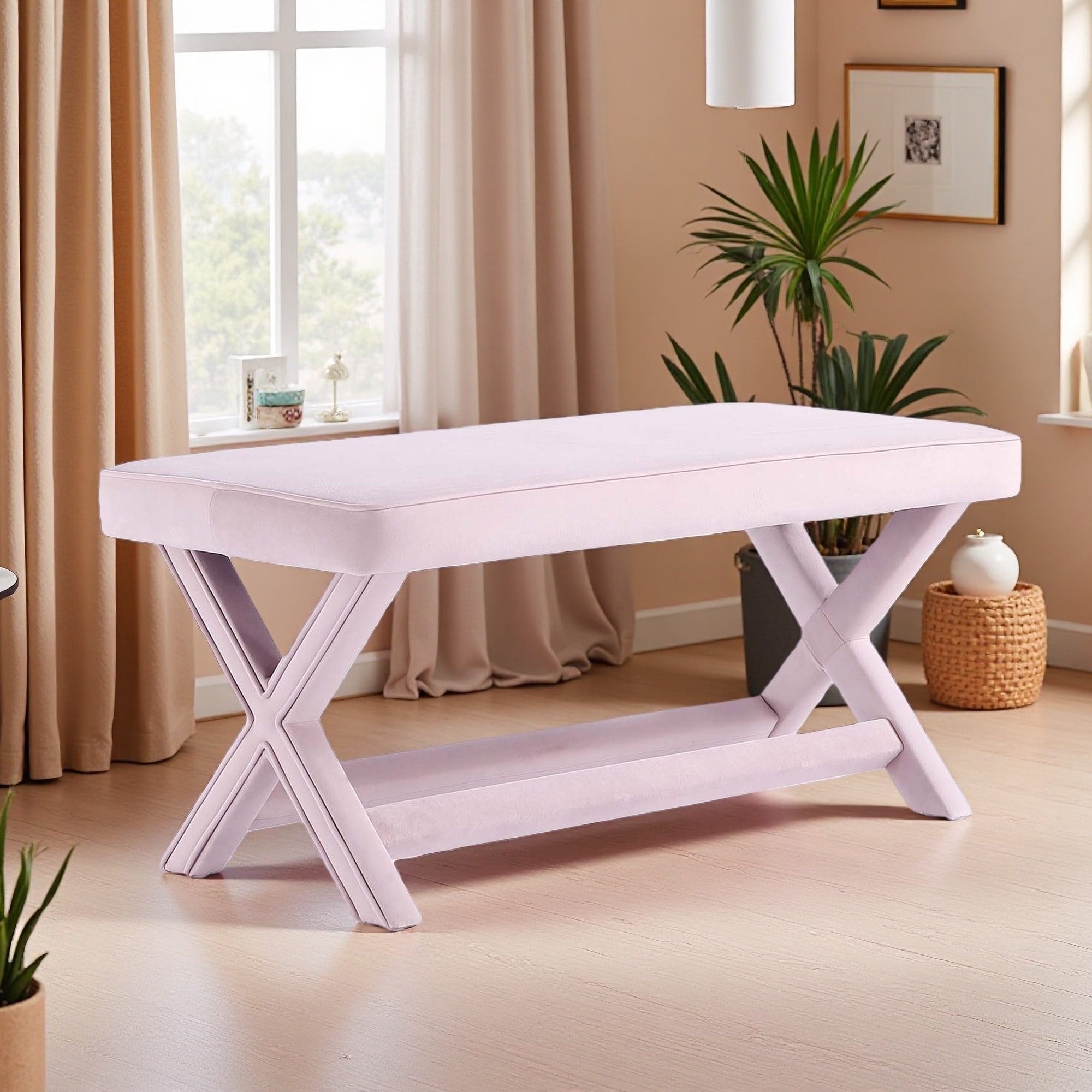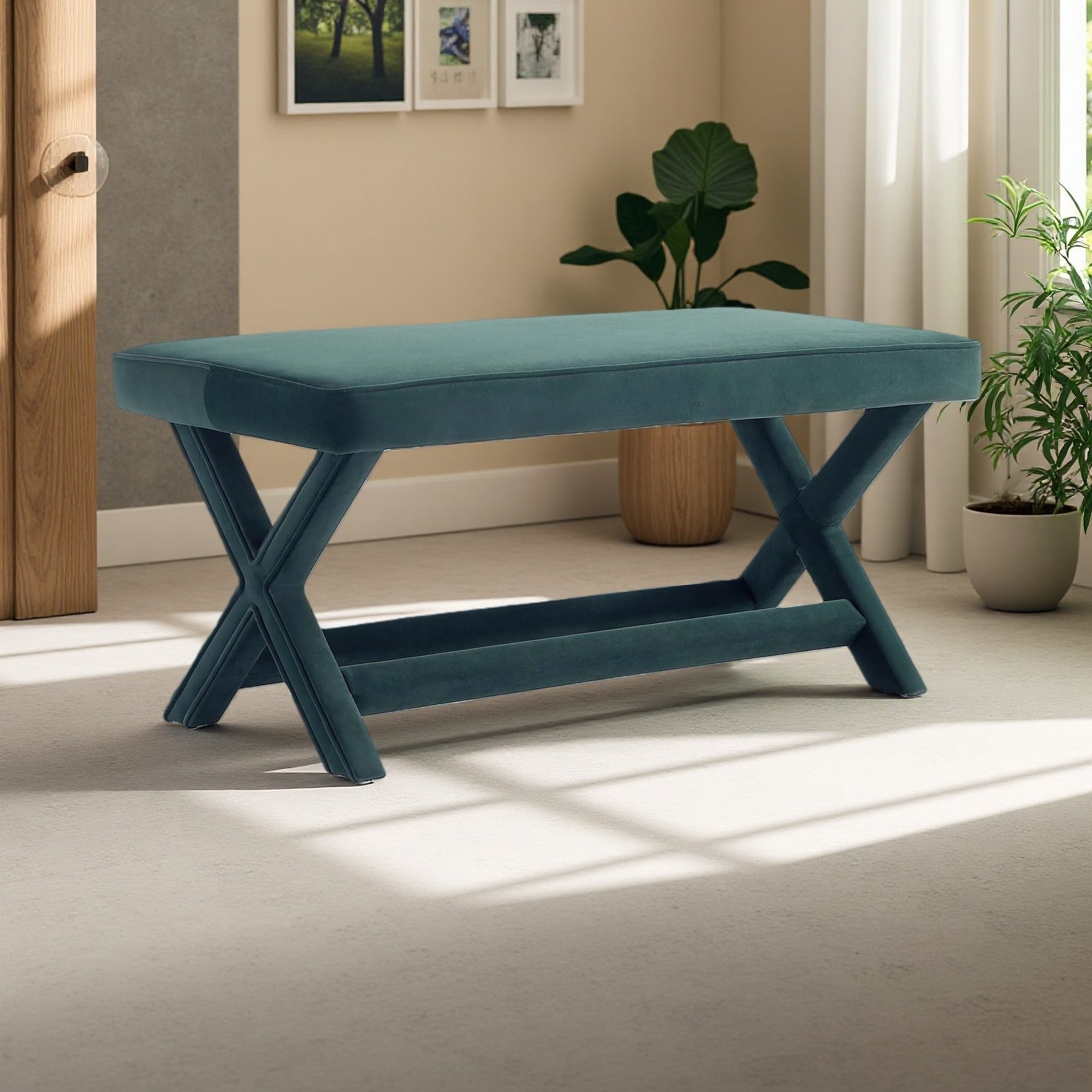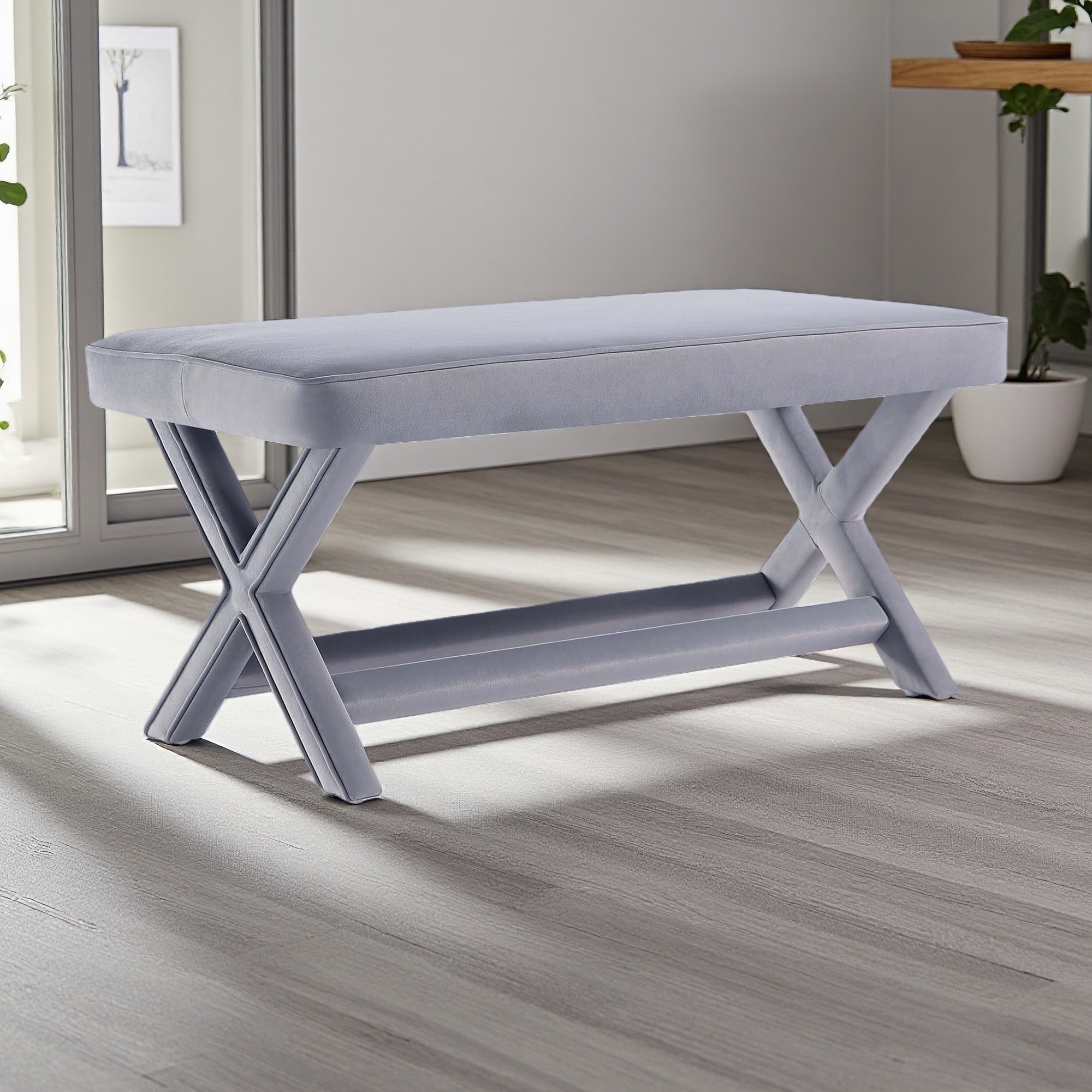 42.12"L Mid-Century Modern Velvet Upholstered Bench with X-Crossed Legs and Piped Cushion for Living Room and Bedroom