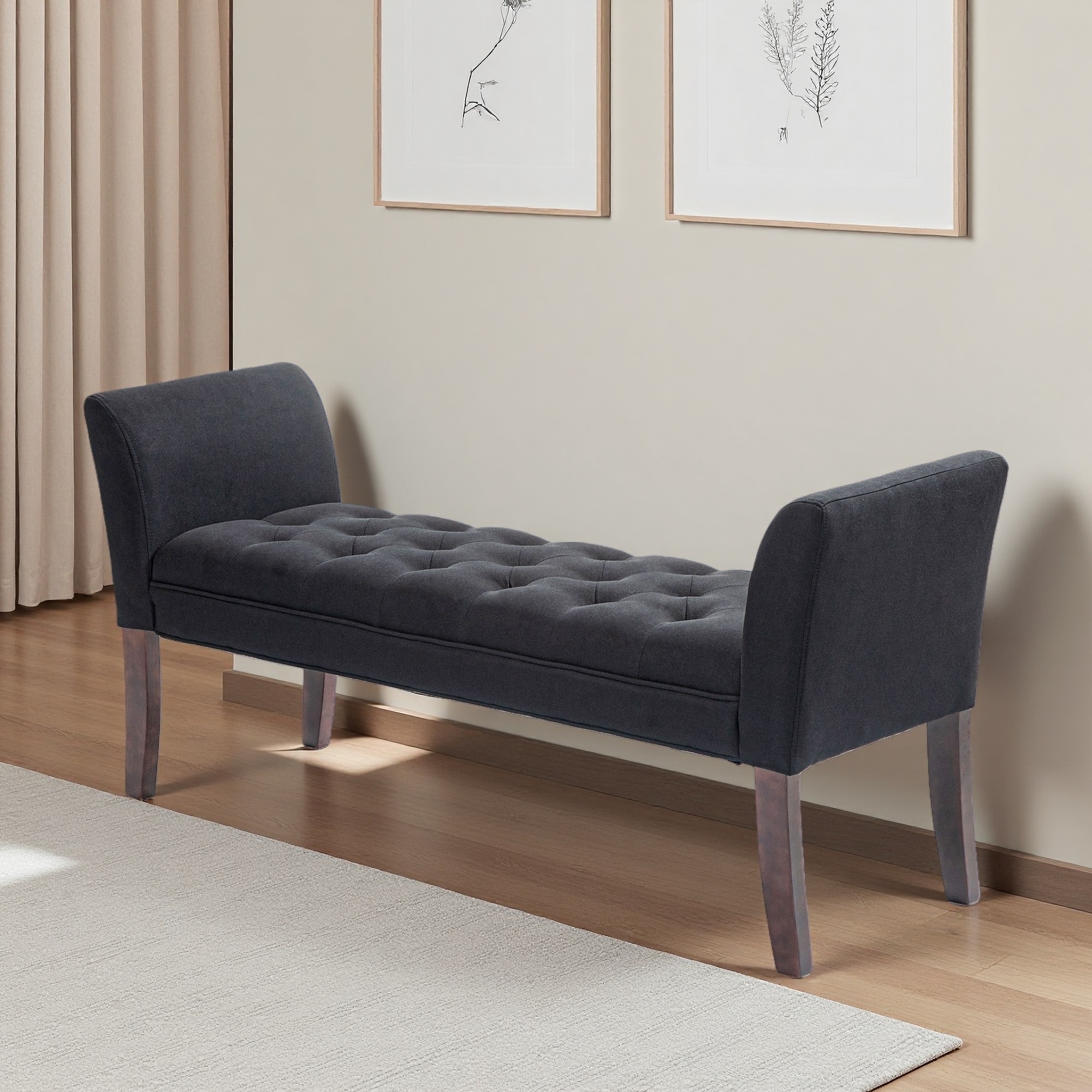 55"L Upholstered End of Bed Bench with Button Tufted Design, Soft Arms & Solid Wood Legs for Bedroom, Entryway, Living Room
