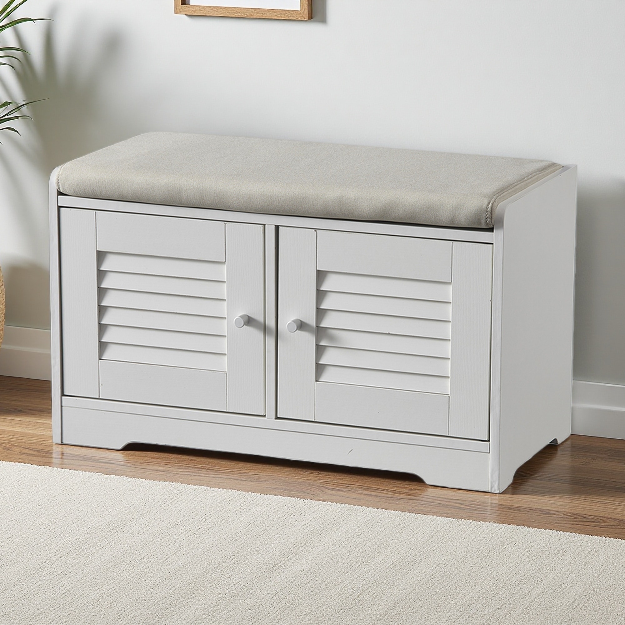 28.74" Shoe Storage Bench with 2 Door Cabinet, Adjustable Shelves, Detachable Cushion, Movable Panels, Shoe Bench for Entryway