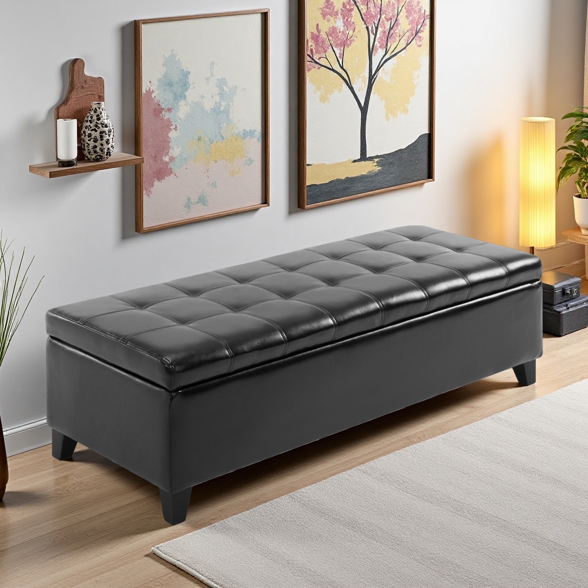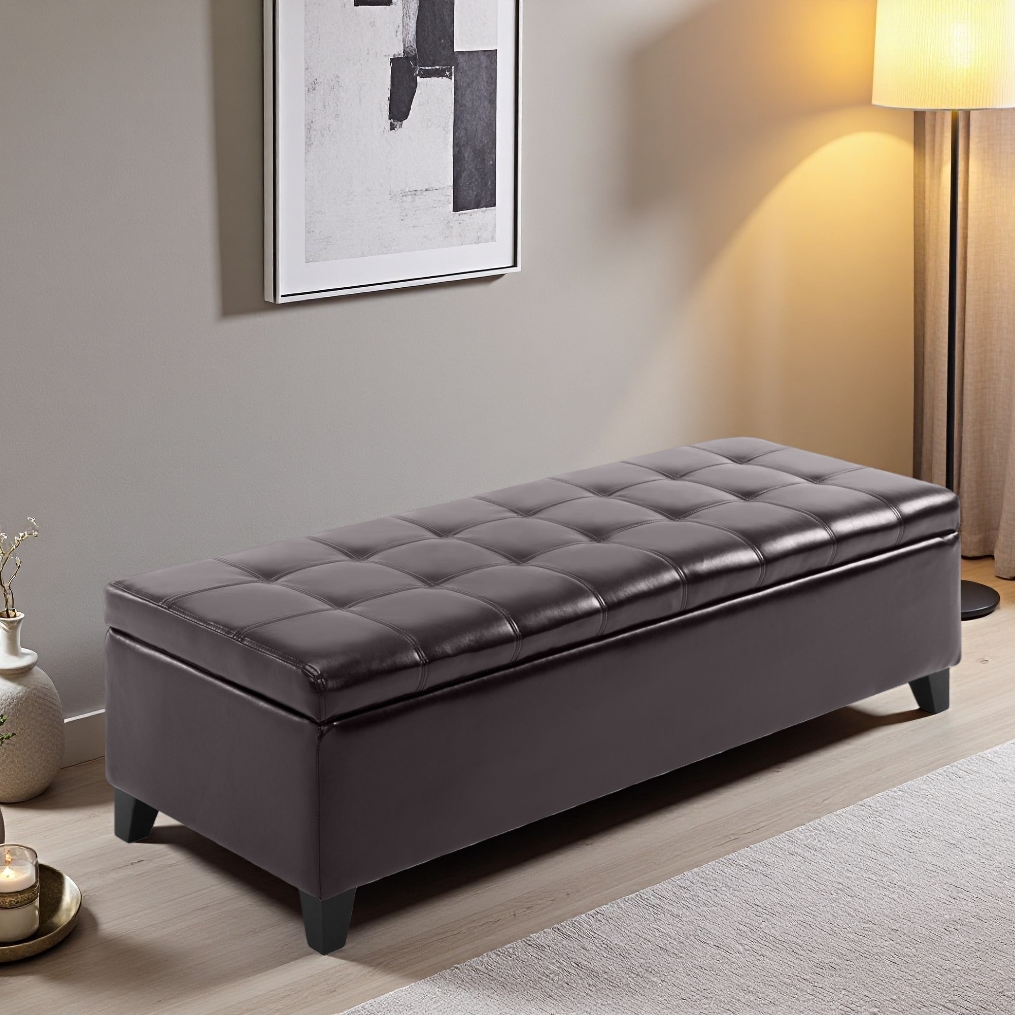 51"L Faux Leather Ottoman Storage Bench, Tufted Lift Top Storage Chest for Living Room, Storage with Comfortable Seating
