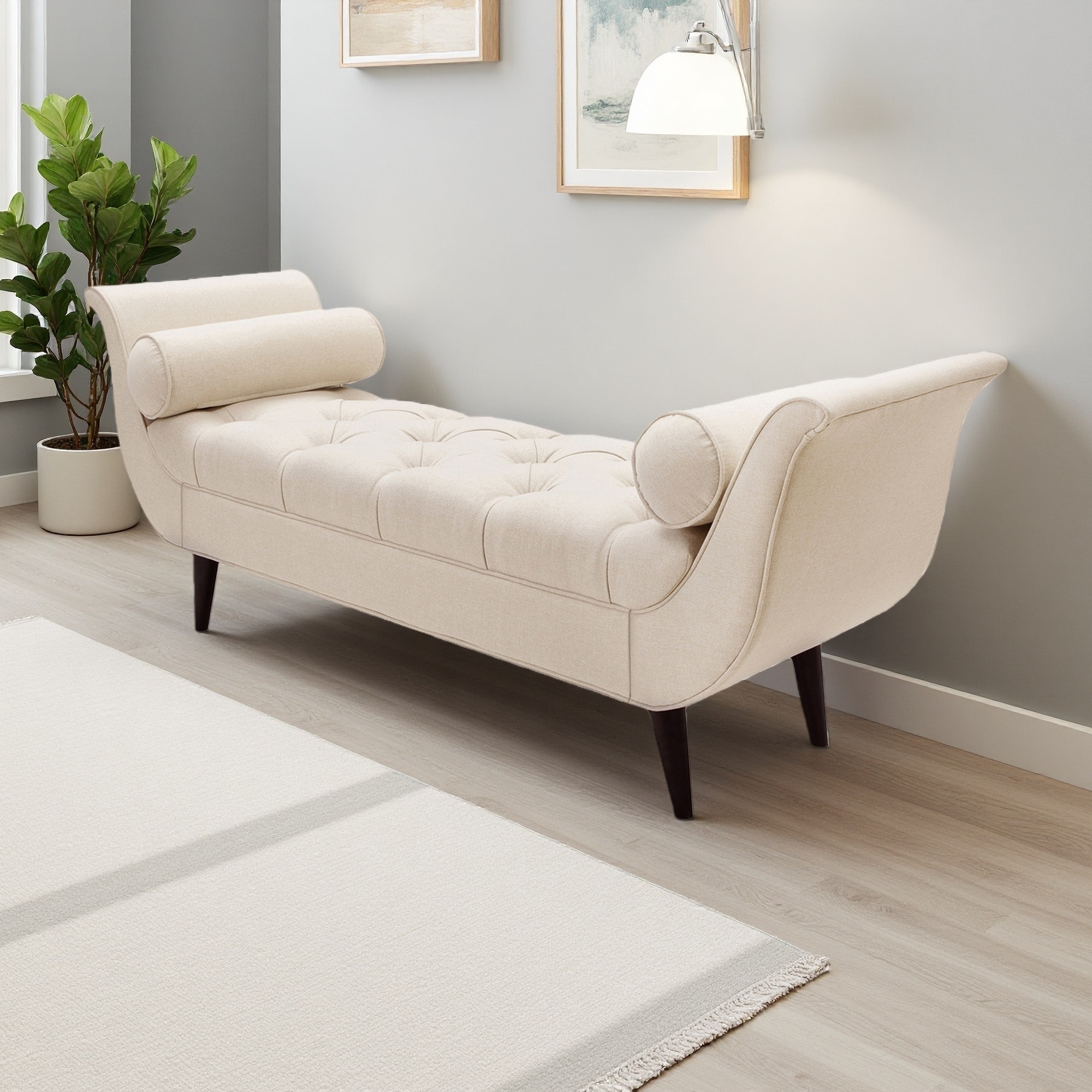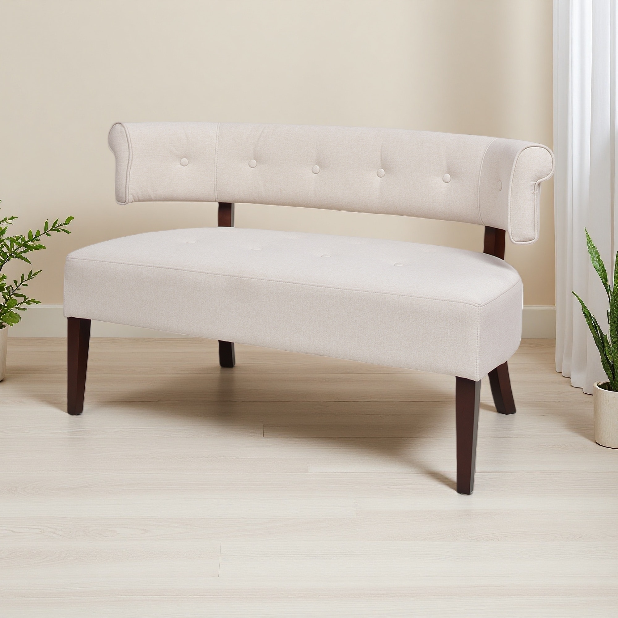 51"L Roll Arm Tufted Bench Settee in Polyester with Mid-Century Modern Design and High-Density Foam